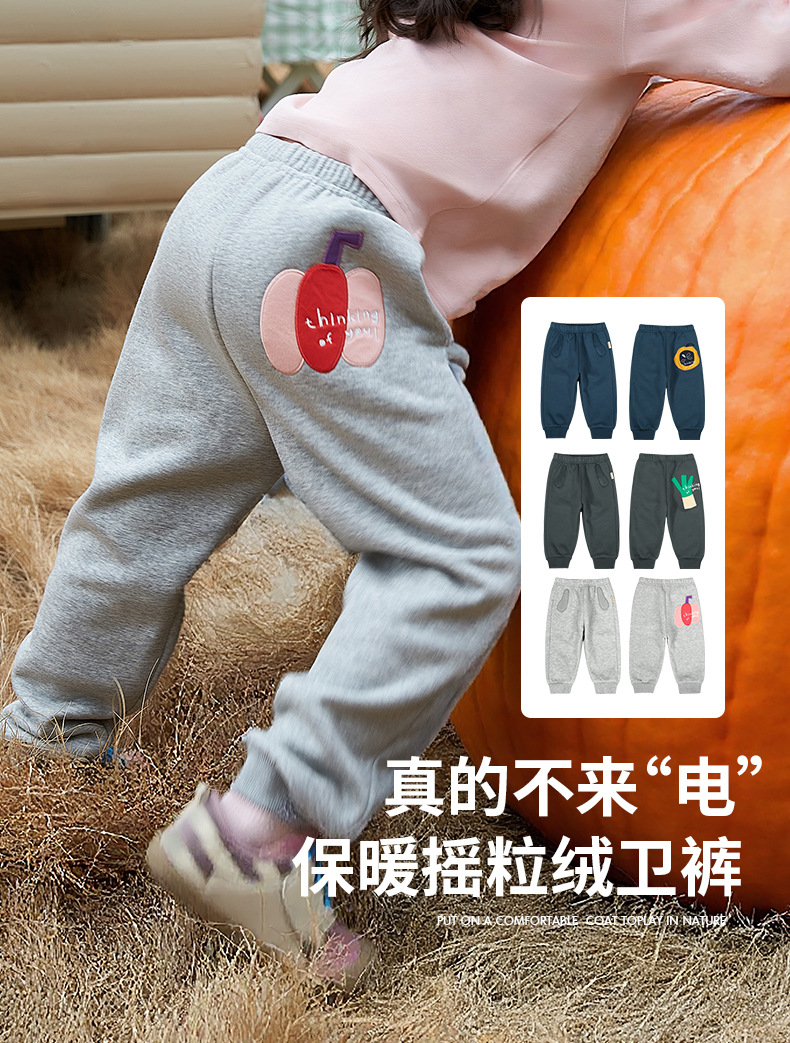 BBQB 어린이 바지 기모 정전기 방지 소년 소녀 양털 두꺼운 스포츠 바지 가을과 겨울 나가는 발목 바지