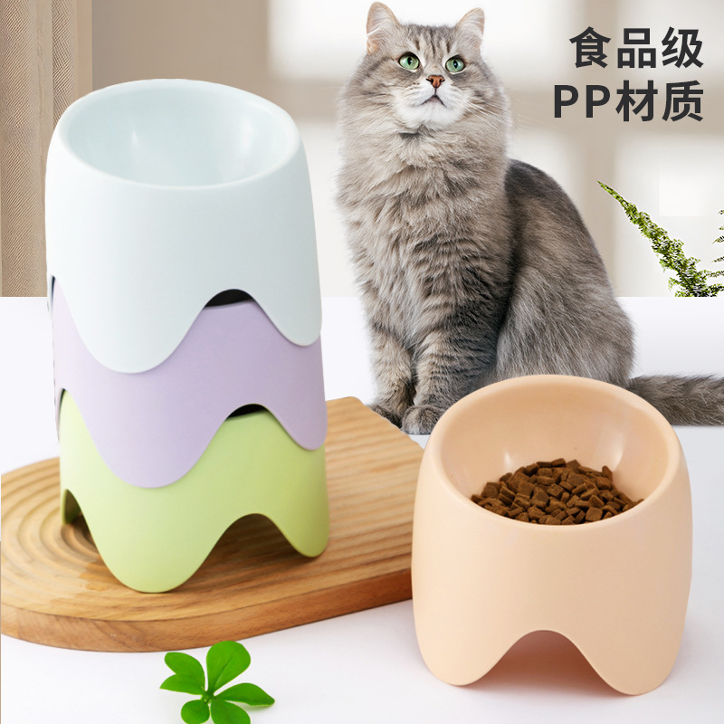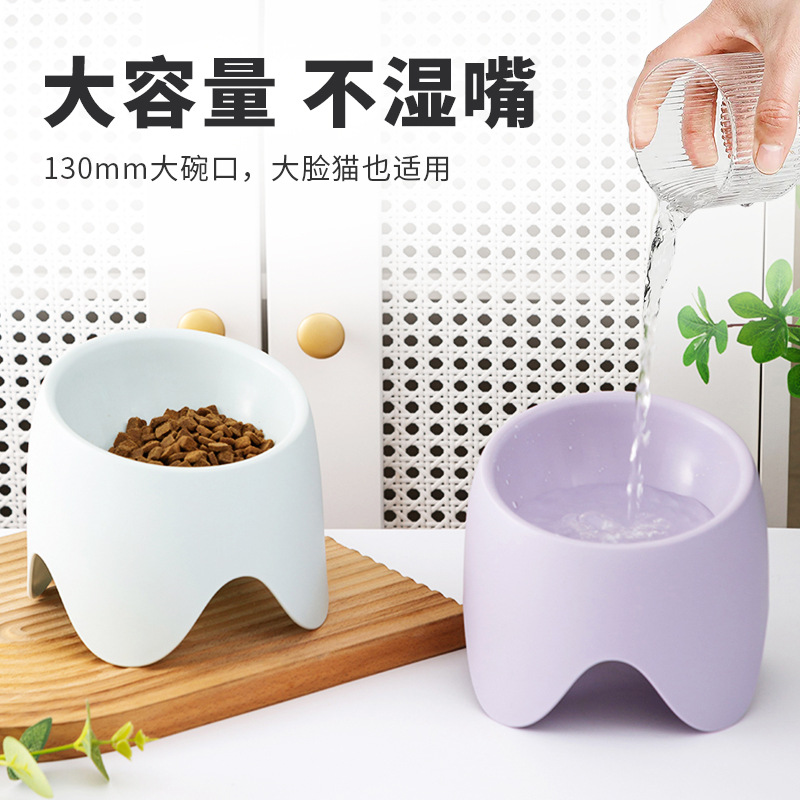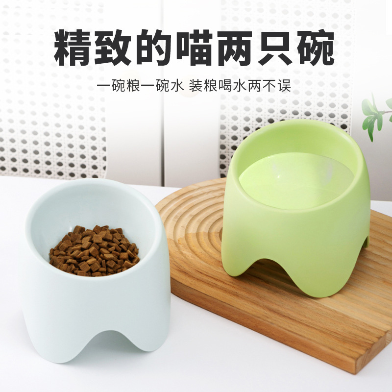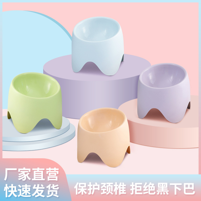 새로운 고양이 그릇 비스듬한 목 보호 먹이 그릇 고양이 개 먹이 분지 높은 발 안티 노크 마카롱 컬러 밥 그릇스토어 가기