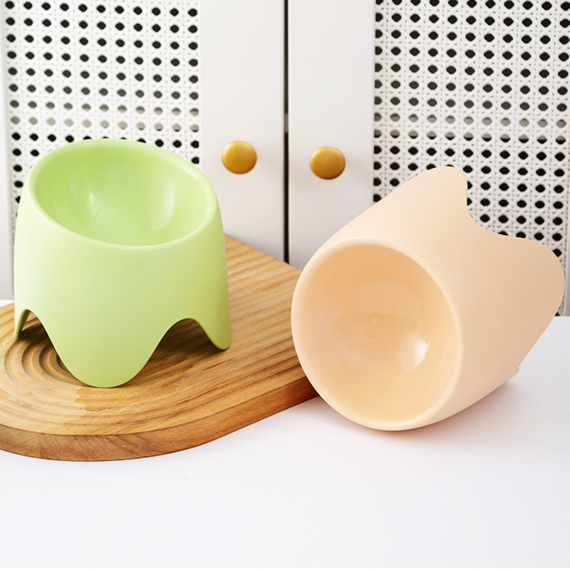 새로운 고양이 그릇 비스듬한 목 보호 먹이 그릇 고양이 개 먹이 분지 높은 발 안티 노크 마카롱 컬러 밥 그릇