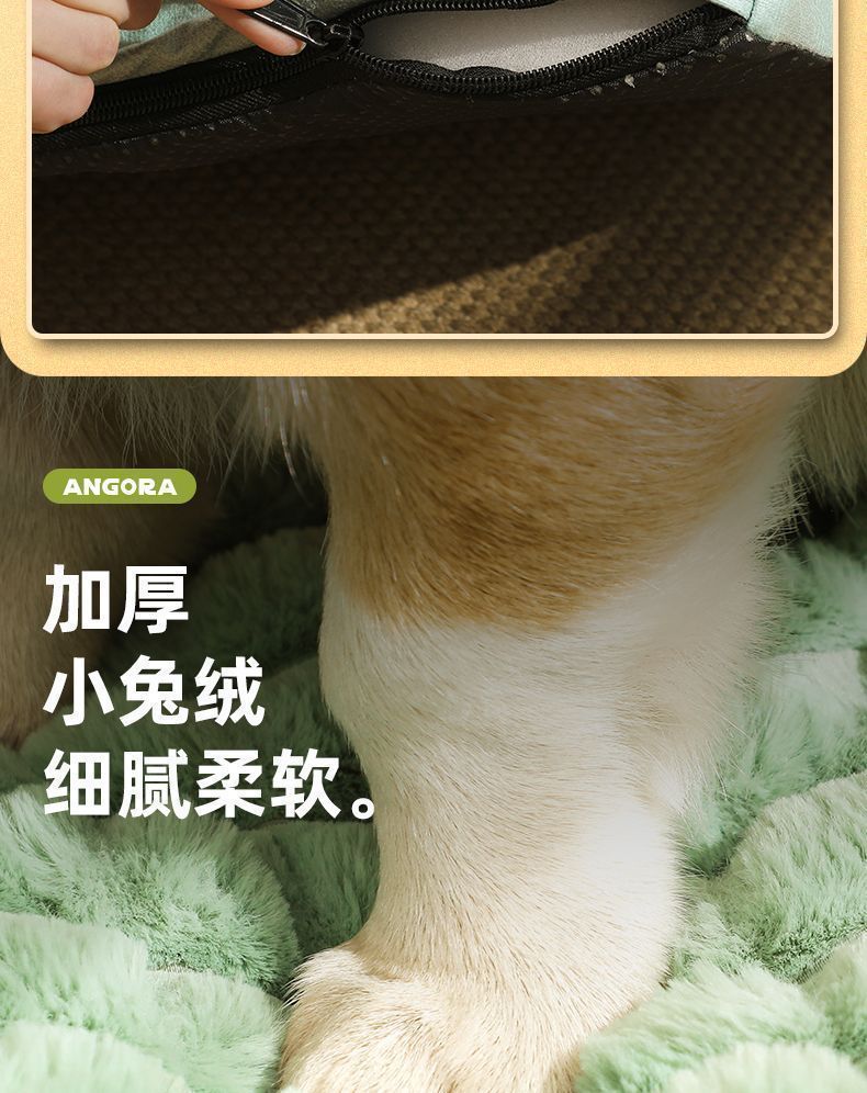 • 아보카도 그린 [탈부착 및 세탁 가능한 지퍼 디자인] 두꺼운 토끼 벨벳