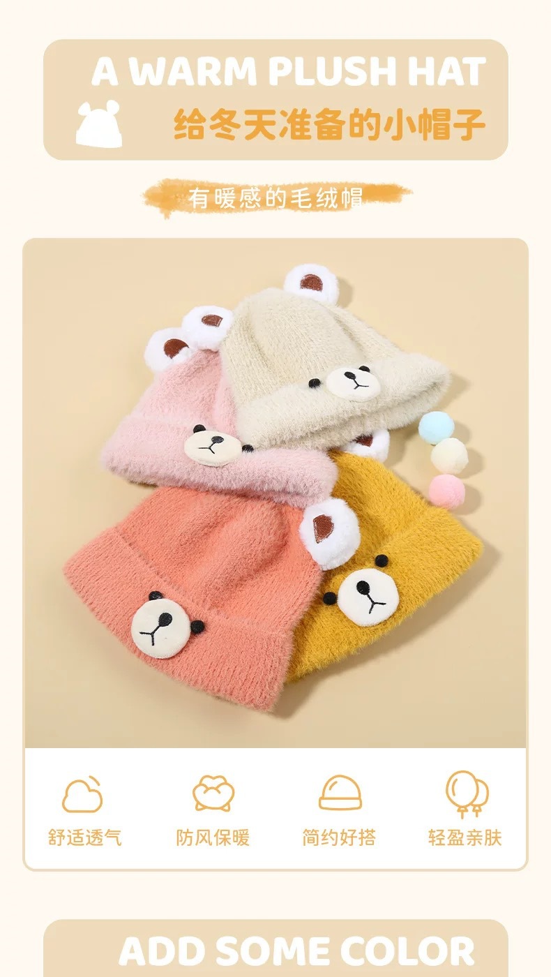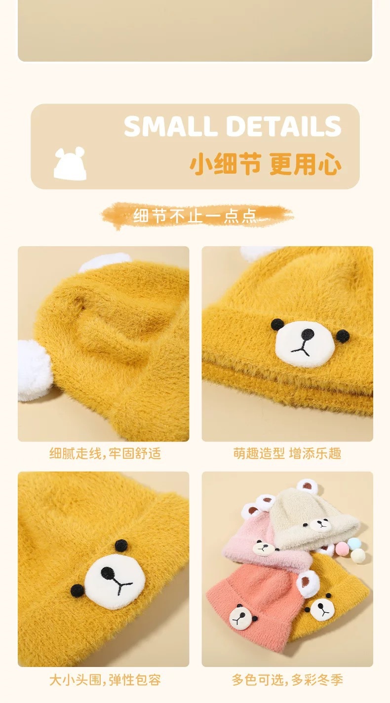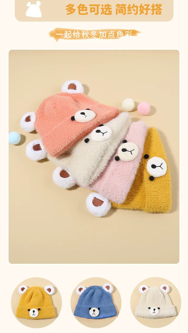가을과 겨울 어린이 모자 아기 따뜻한 울 모자 귀여운 곰 소년과 소녀 니트 모자 겨울 모자 조수스토어 가기