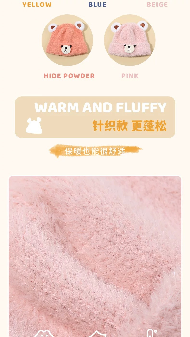 가을과 겨울 어린이 모자 아기 따뜻한 울 모자 귀여운 곰 소년과 소녀 니트 모자 겨울 모자 조수