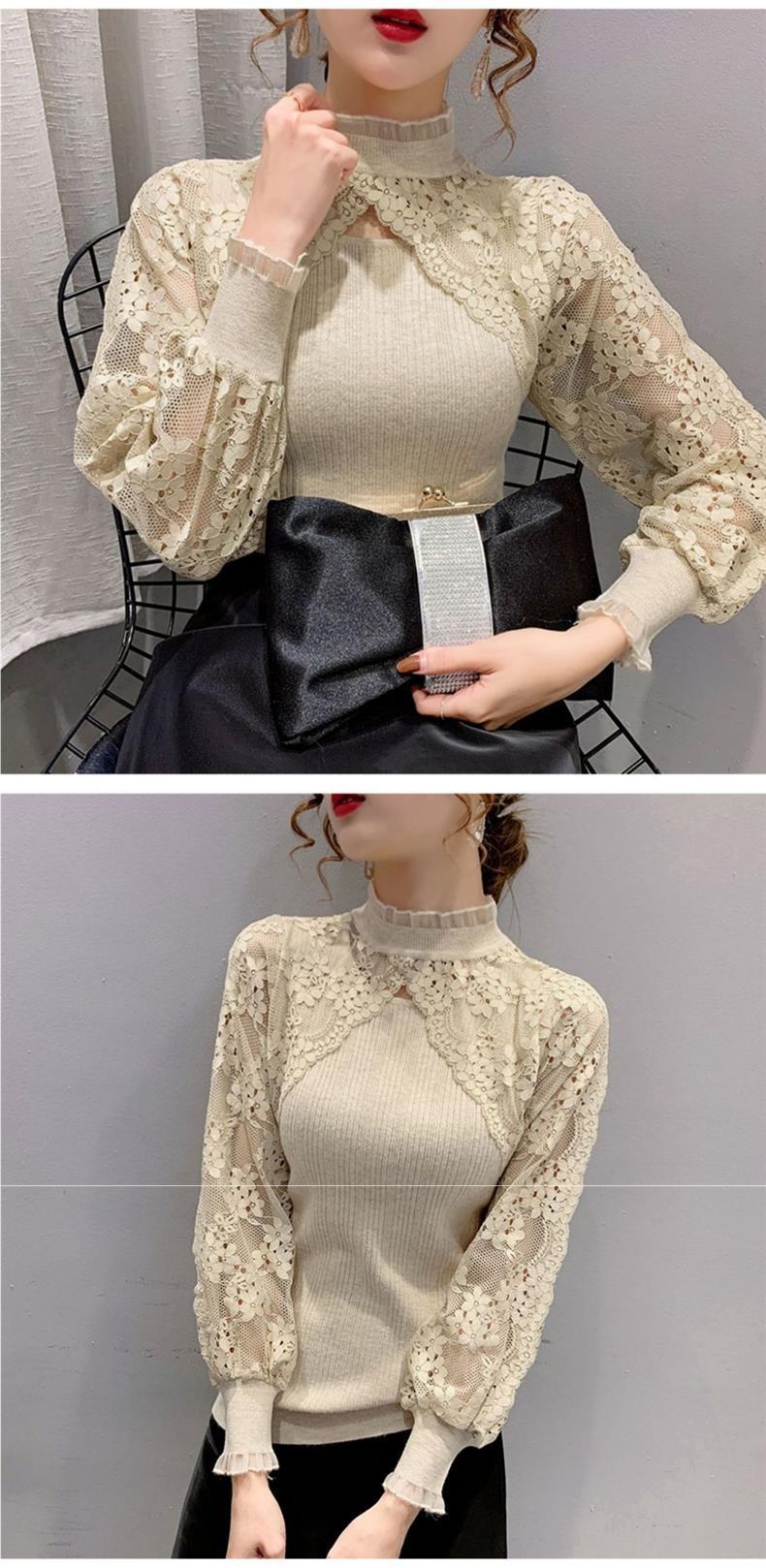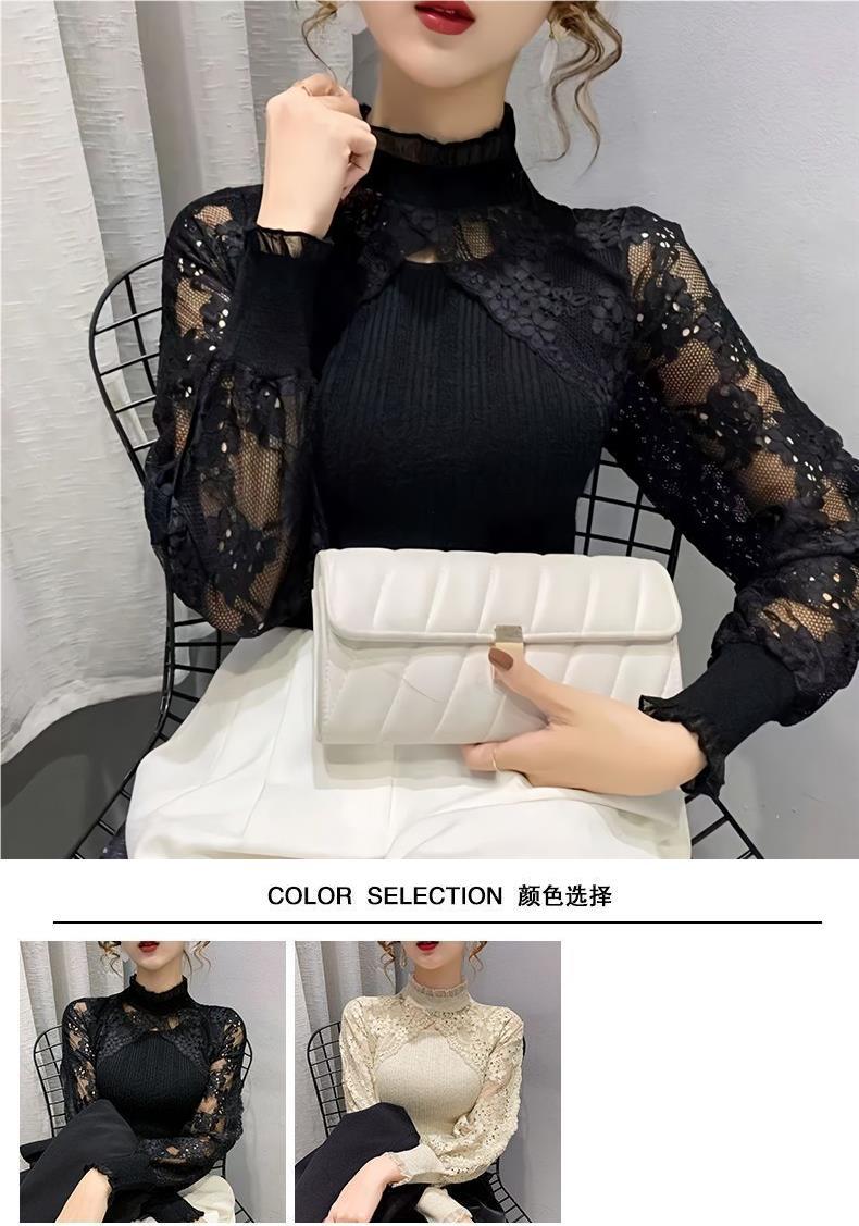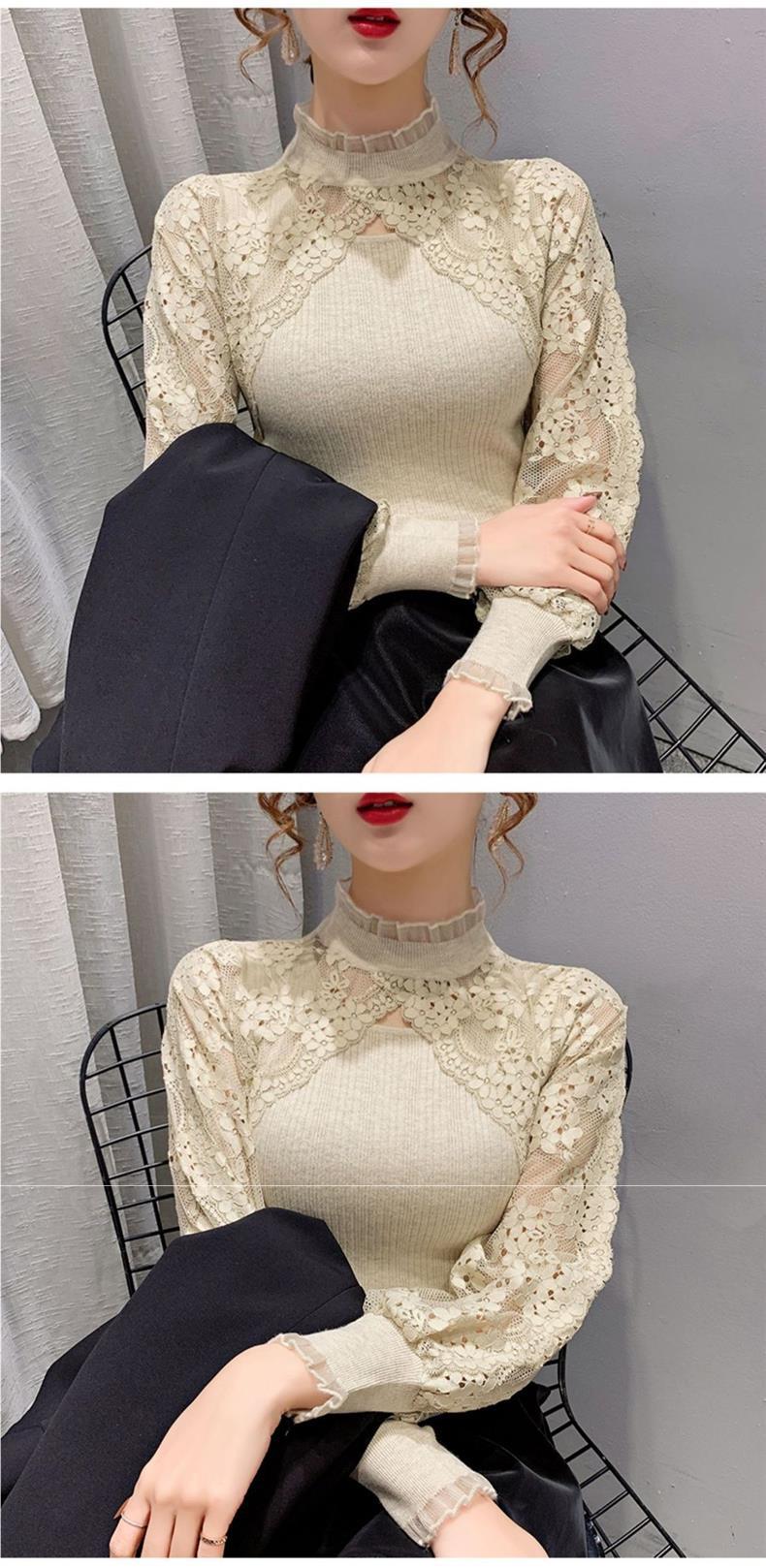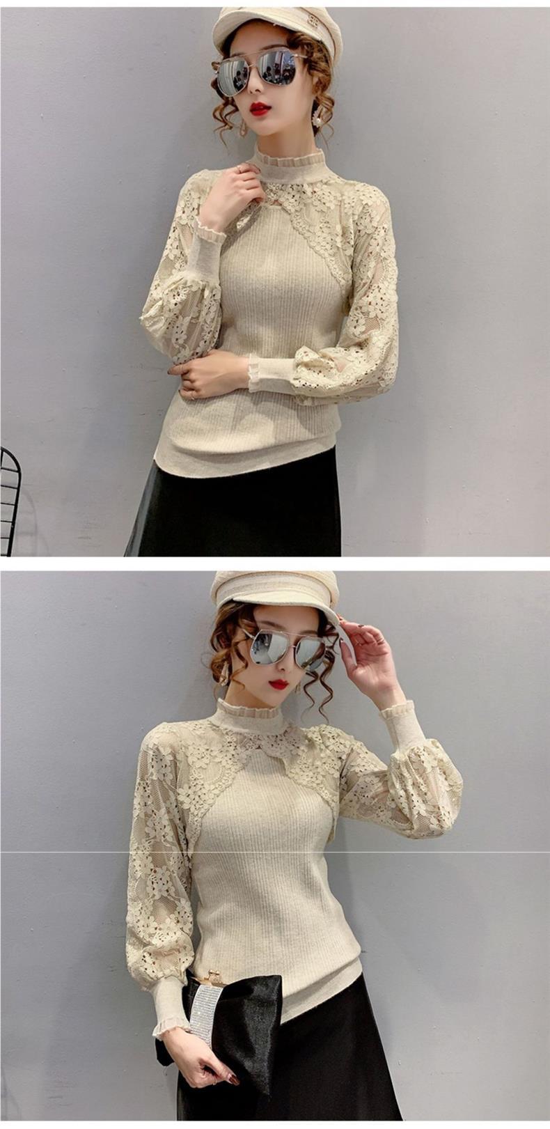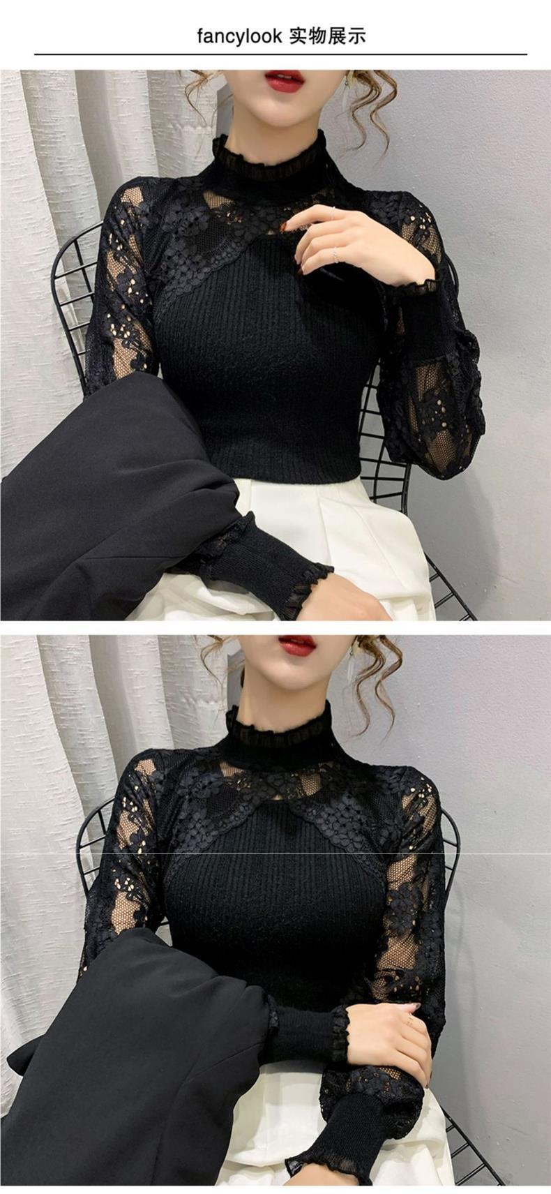 [40.00 kg-90.00 kg] 하프 하이 칼라 단색 스웨터 여성용 웨스턴 레이스 긴소매 스웨터 여성용 슬림베이스 셔츠
