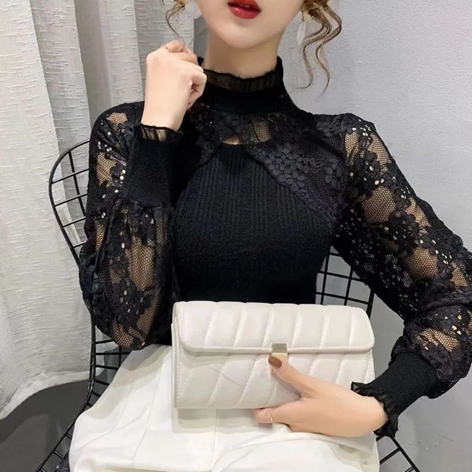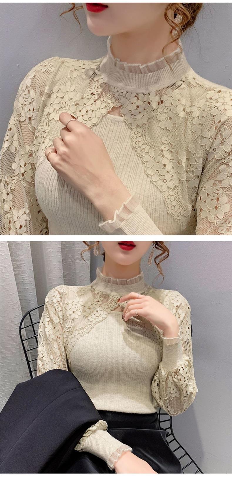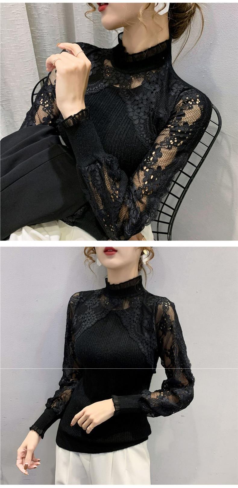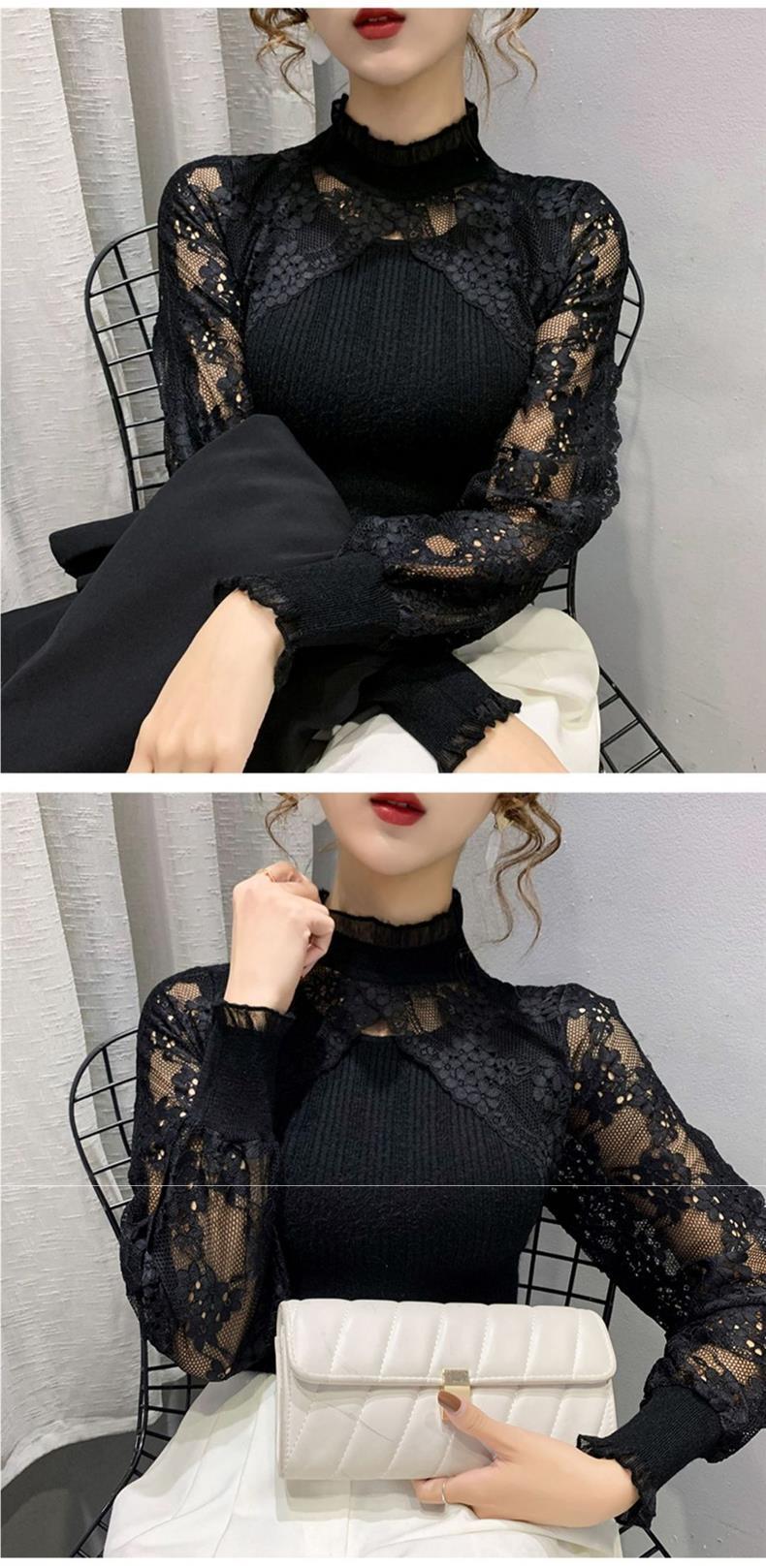 [40.00 kg-90.00 kg] 하프 하이 칼라 단색 스웨터 여성용 웨스턴 레이스 긴소매 스웨터 여성용 슬림베이스 셔츠