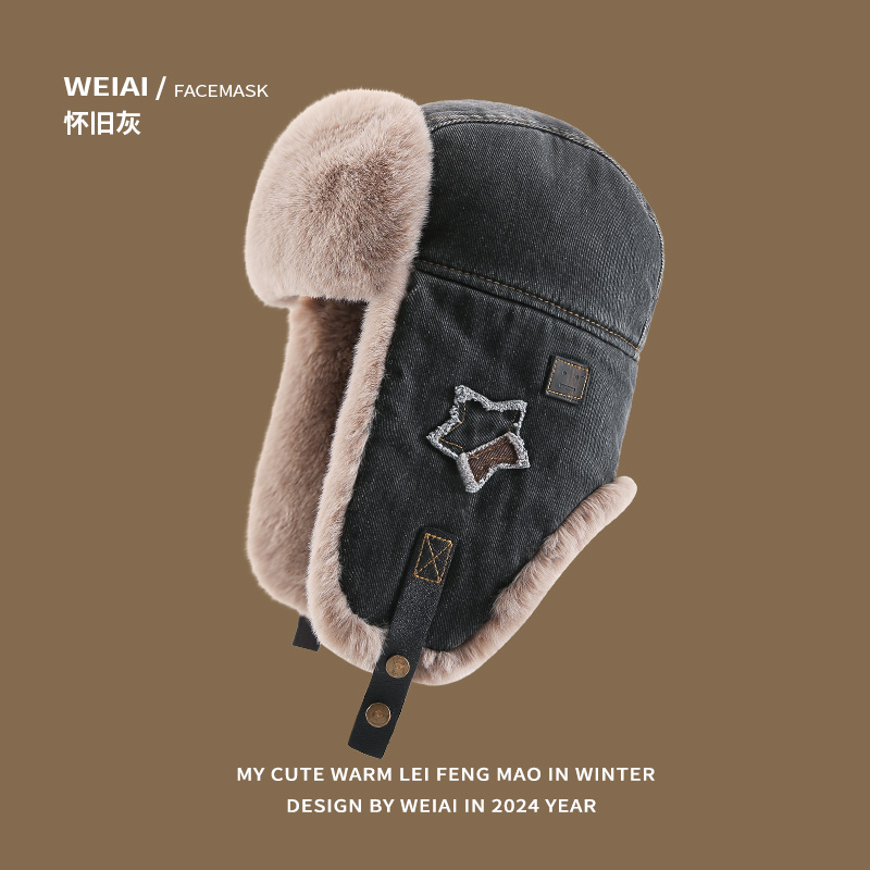 모자 남자의 2024 새로운 겨울 승마 방풍 따뜻한 귀마개 헤드 코튼 캡 기모 두꺼운 차가운 레이 펑 캡스토어 가기