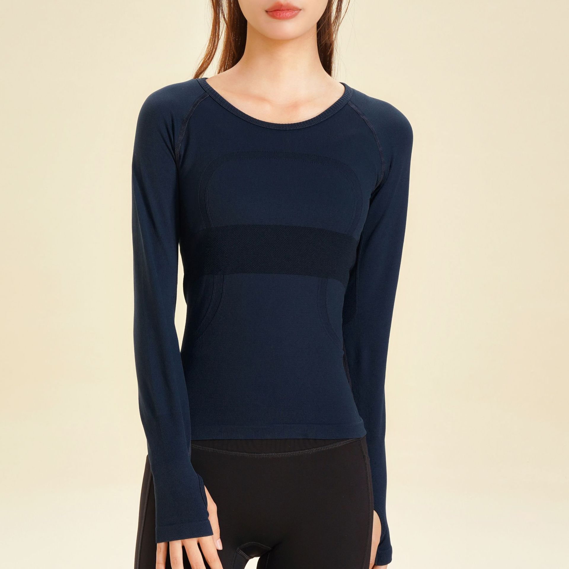 룰루 새로운 요가 의류 여성 스포츠 긴 소매 T 실행 높은 탄성 빠른 드라이 피트니스 필라테 슬림 러닝 탑