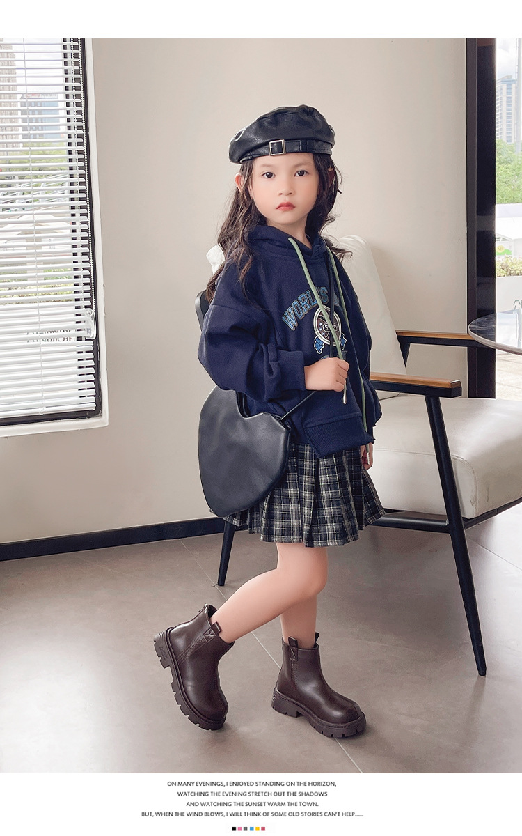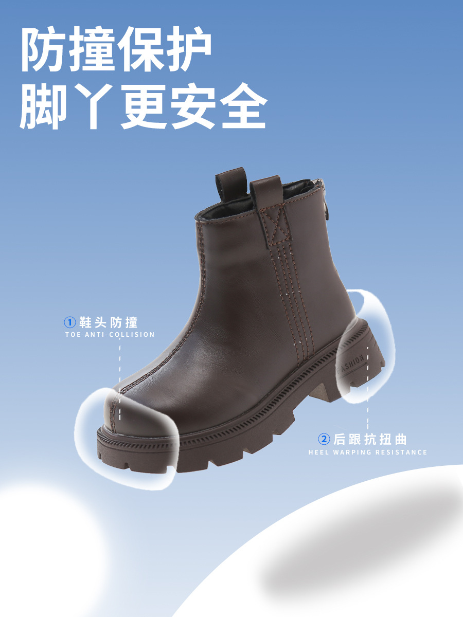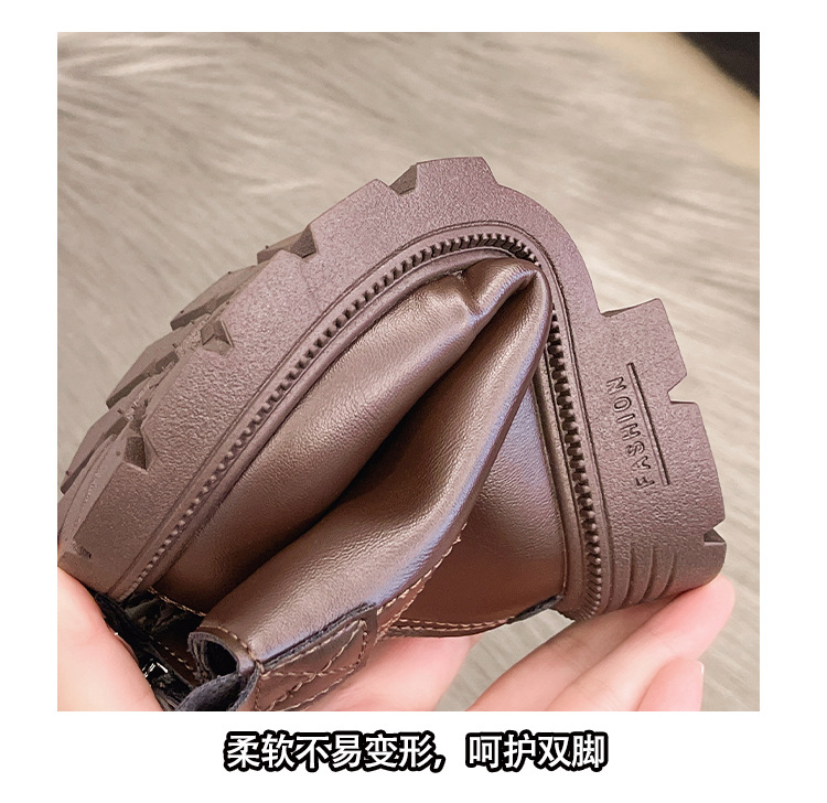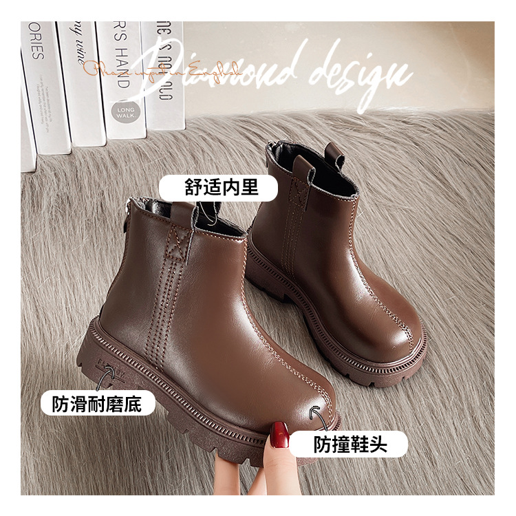 소녀 부츠 가을과 겨울 2024 새로운 따뜻한 패션 짧은 부츠 서양식 가죽 부츠 얇은 벨벳 마틴 부츠 올 매치 공주스토어 가기