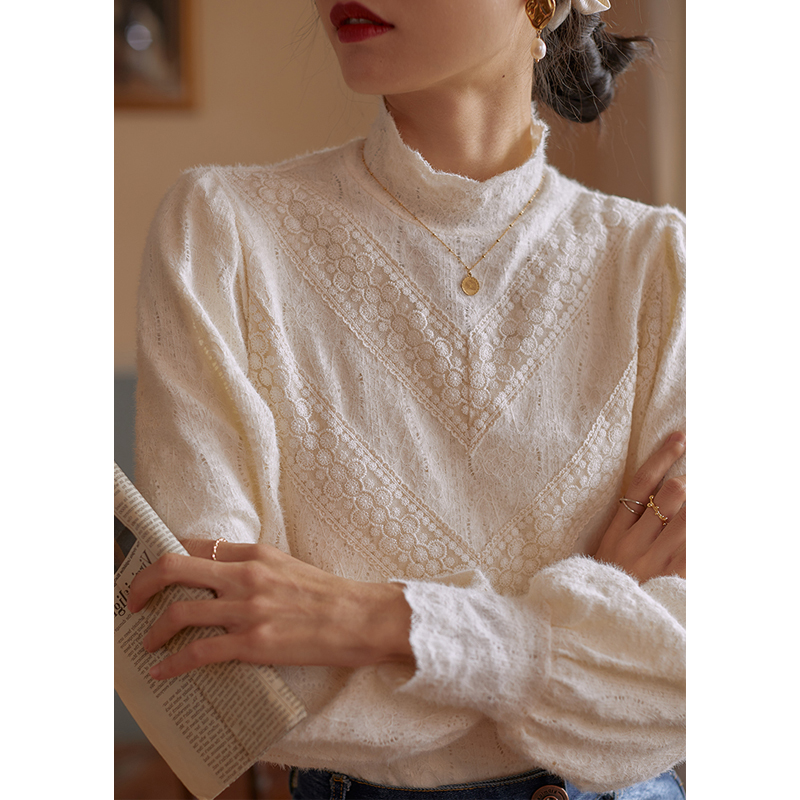 팰리스 스타일 하프 하이 칼라 스크러스트 레이스 셔츠 여성용 이른 봄 새로운 프랑스 스타일 작은 셔츠