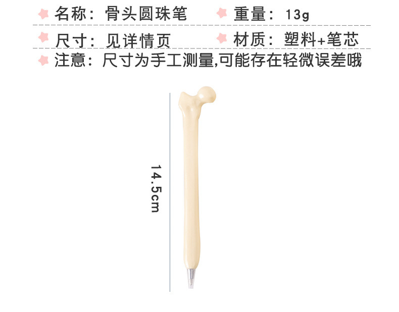创意骨头中性笔 学生学习文具 仿真笔 简约 奶油色系