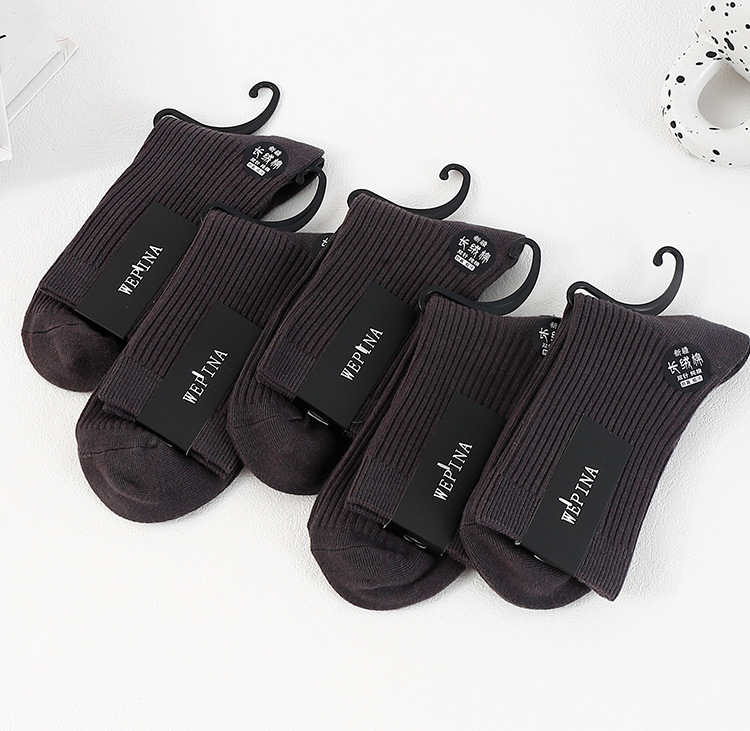 남성용 신장면 이중 바늘 롱삭스, 냄새 방지 및 보온 기능의 중간 길이 면양말, 가을 겨울용 무봉제 캐주얼 양말, 주지 양말 공장