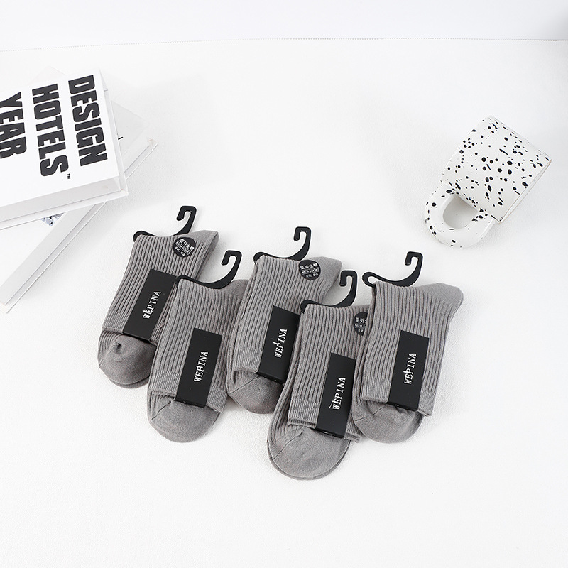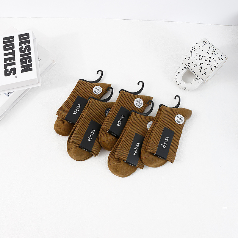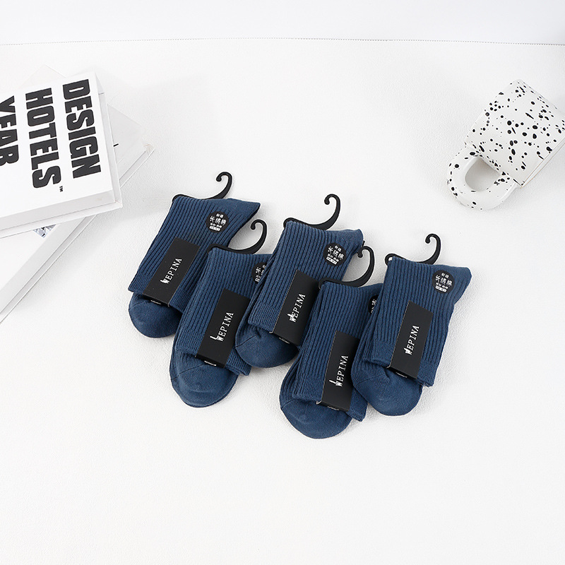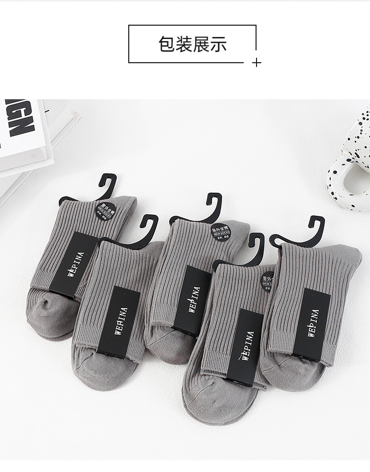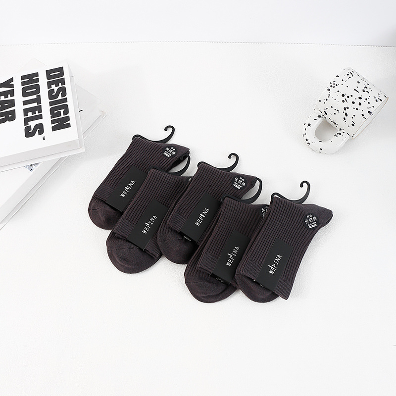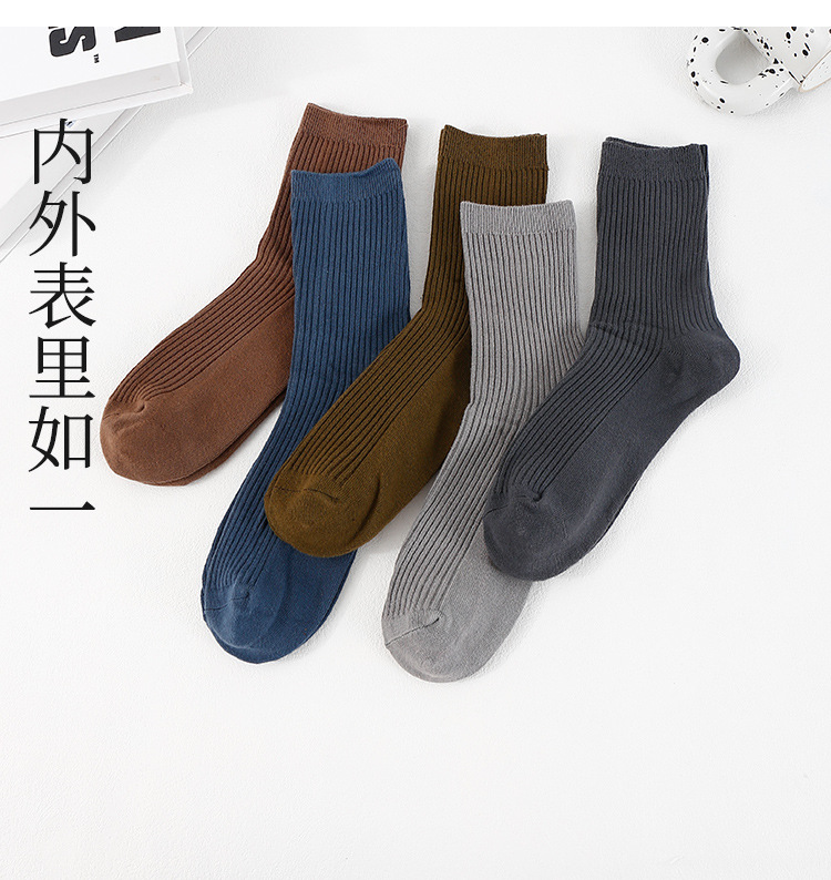 남성용 신장면 이중 바늘 롱삭스, 냄새 방지 및 보온 기능의 중간 길이 면양말, 가을 겨울용 무봉제 캐주얼 양말, 주지 양말 공장스토어 가기