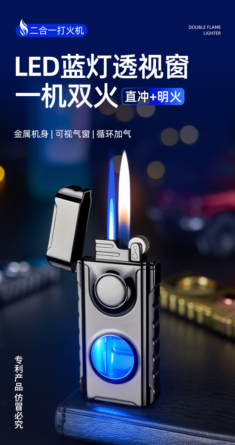 그물 레드 라이터 창조적 인 성격 더블 불꽃 시원한 푸른 빛 조수 비즈니스 생일 선물 레터링 남성용 DIY스토어 가기