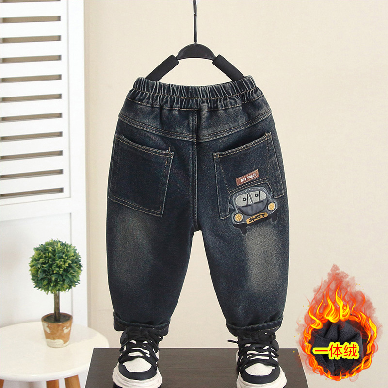 6705 소년 바지 올인원 벨벳 아동 청바지 플러스 벨벳 2025 가을 겨울 새로운 스타일 베이비 두꺼운 바지 유행