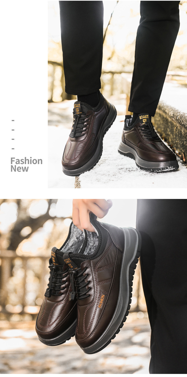 겨울 두꺼운 밑면 패딩 신발 남성용 기모 따뜻한 캐주얼 신발 가죽 방수 중년 및 노인 한 발 게으른 신발 남성