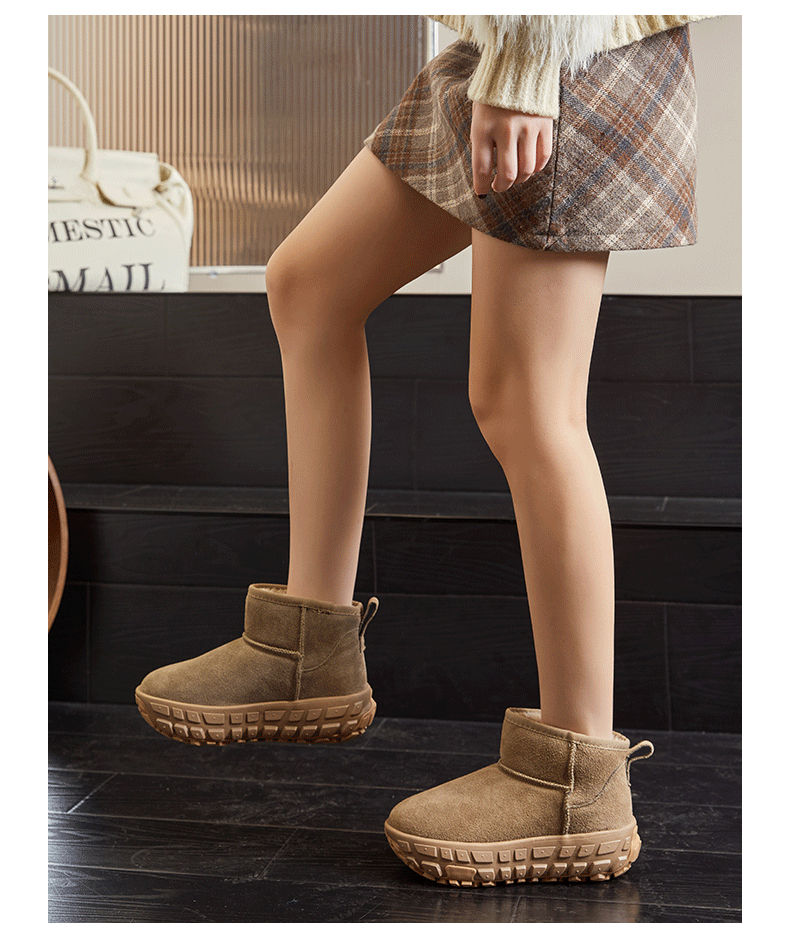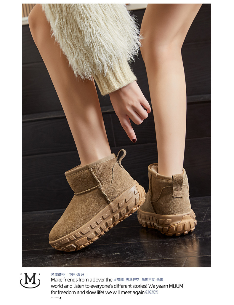 발포 바닥 가죽 스노우 부츠 여성의 2024 겨울 새로운 기모 따뜻한 여성 부츠 빈티지 짧은 부츠 패션 부츠스토어 가기