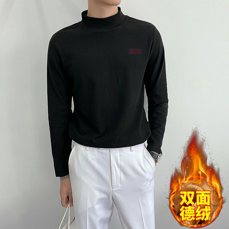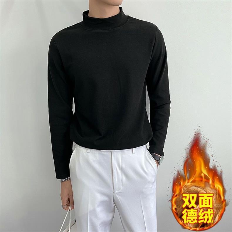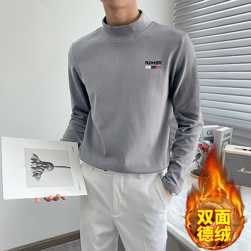 가을 겨울 양면 독일 벨벳 하프 터틀넥 발열 보온 속옷 남성 T 가을 코트 레터링 셔츠 탑 티셔츠 긴팔스토어 가기