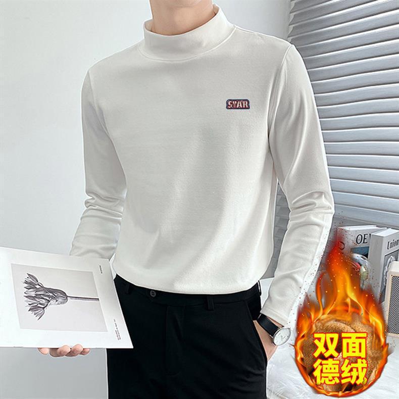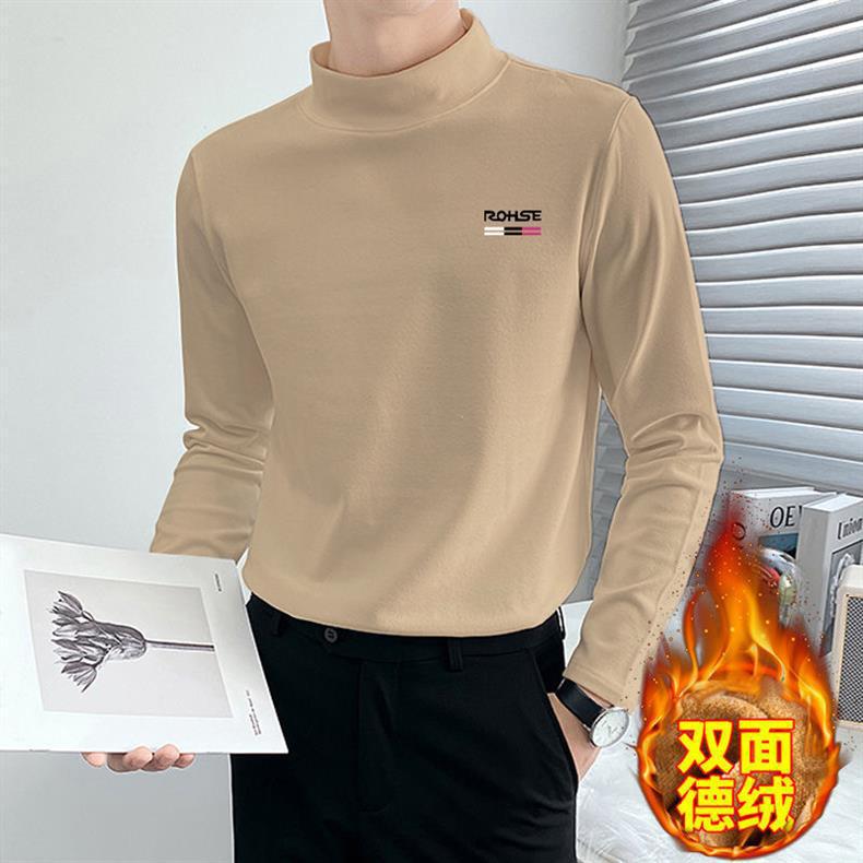 가을 겨울 양면 독일 벨벳 하프 터틀넥 발열 보온 속옷 남성 T 가을 코트 레터링 셔츠 탑 티셔츠 긴팔