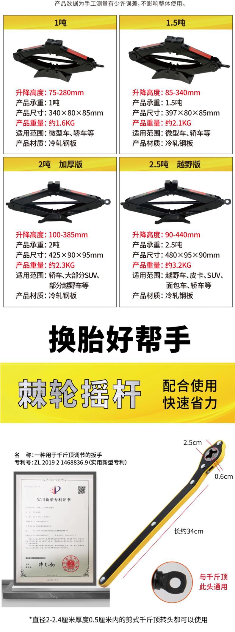 무료 배송 가위 잭 기계 자동차 SUV 오프로드 차량 상업용 차량 1 톤 2 톤 핸드 잭