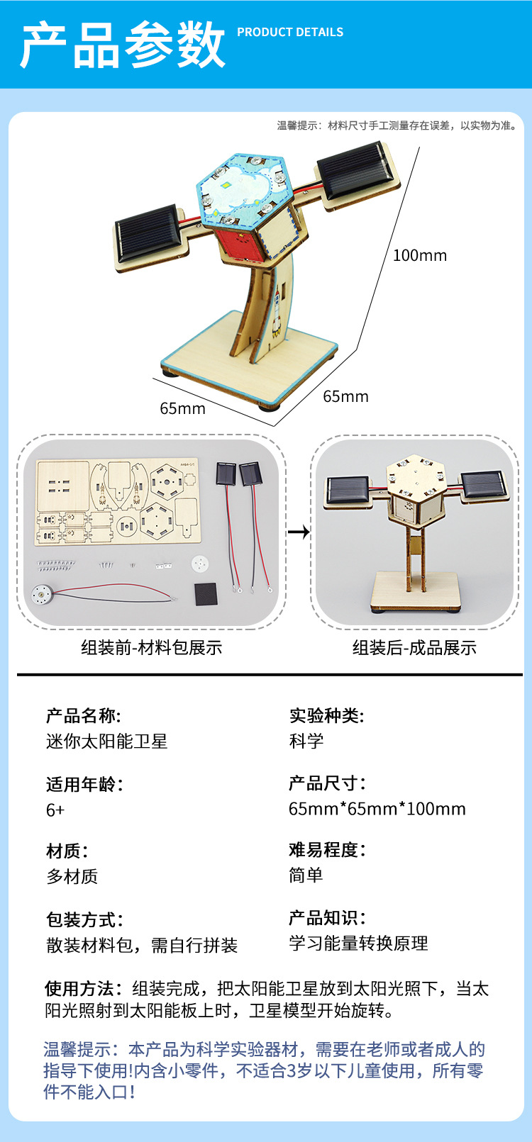 태양 장난감 과학 실험 패키지 7-14 년 된 항공 우주 DIY 인공 위성 모델 과학 기술 작은 생산스토어 가기
