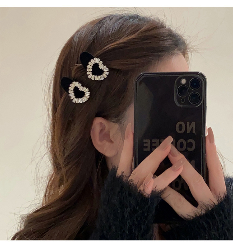 플래시 다이아몬드 스퀘어 버클 벨벳 헤어핀 Bangs 클립 사이드 클립 클립 헤드폰 작은 클립 헤어 액세서리 여성용 덕빌 클립 사이드 클립 클립