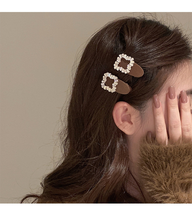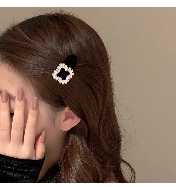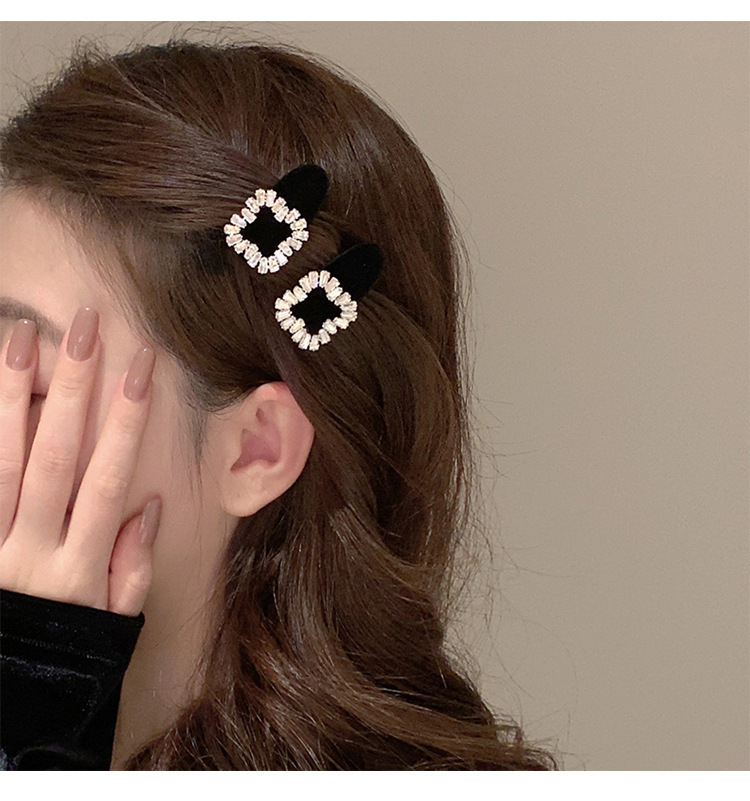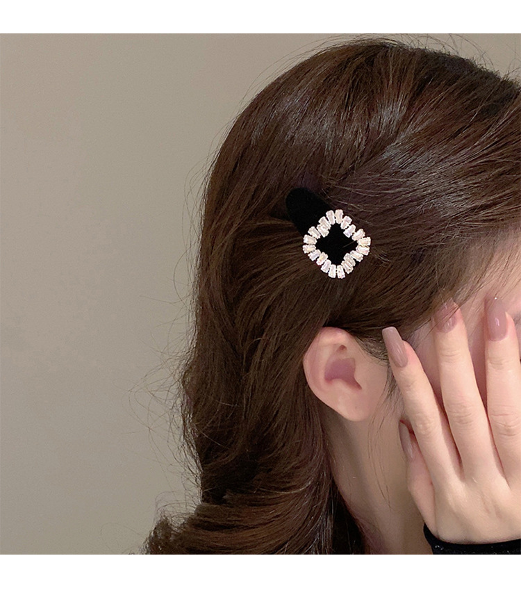 플래시 다이아몬드 스퀘어 버클 벨벳 헤어핀 Bangs 클립 사이드 클립 클립 헤드폰 작은 클립 헤어 액세서리 여성용 덕빌 클립 사이드 클립 클립스토어 가기