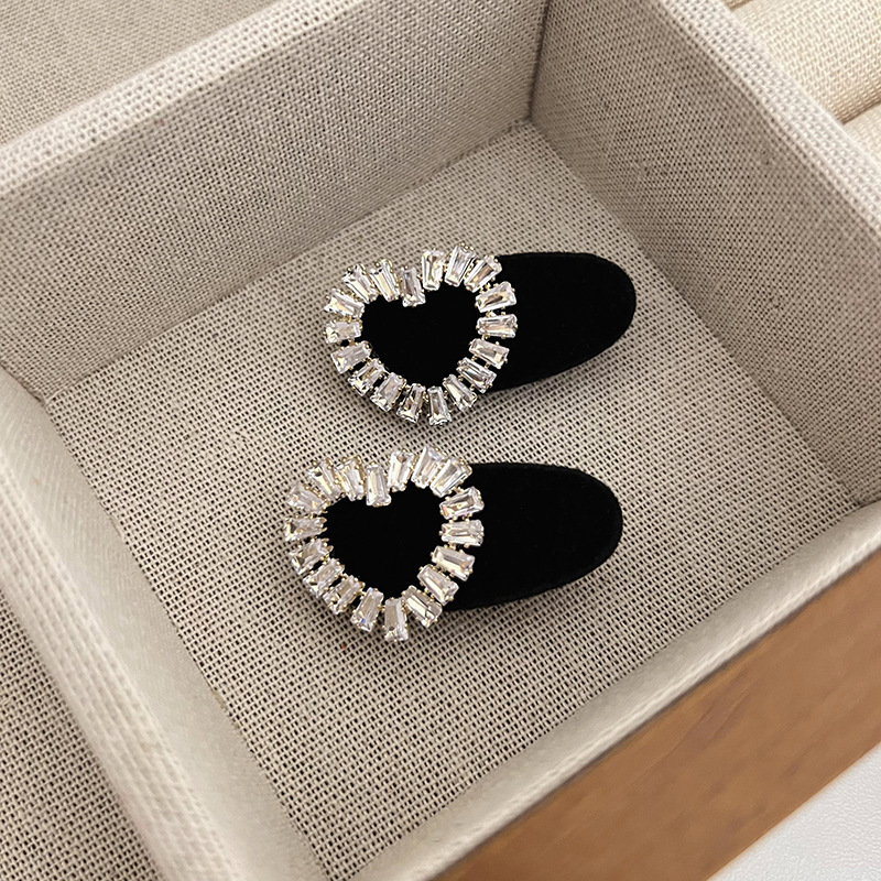 • 반짝이는 다이아몬드 하트 블랙 벨벳
