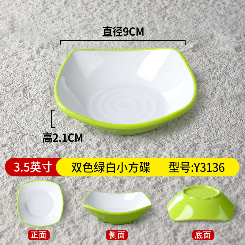 • 3.5inch 2색 녹색 및 흰색 작은 사각형 접시 Y3136
