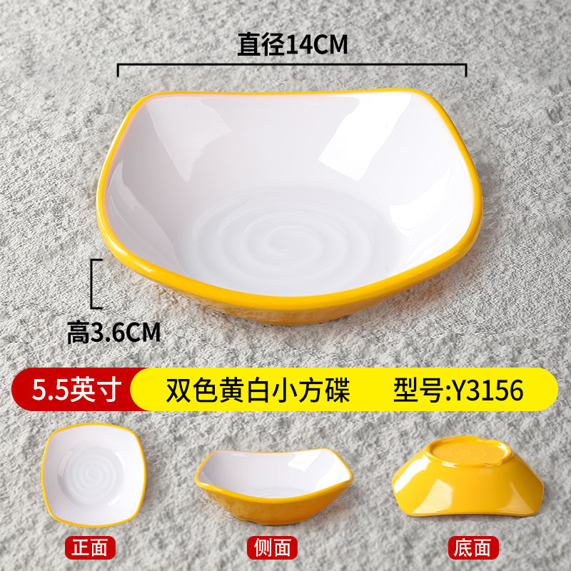 • 5.5inch 노란색과 흰색의 두 가지 색상의 작은 사각형 접시 Y3156