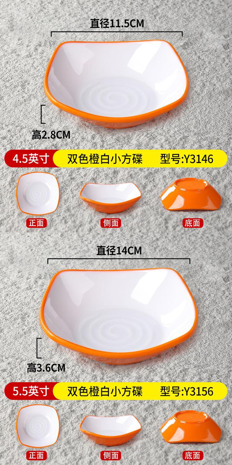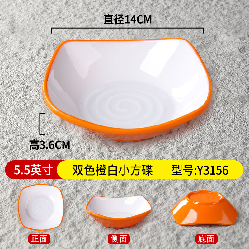 • 5.5inch 주황색과 흰색의 두 가지 색상의 작은 사각형 접시 Y3156