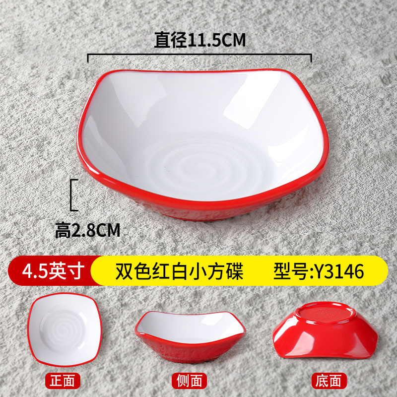 • 4.5inch 빨간색과 흰색의 두 가지 색상의 작은 사각형 접시 Y3146