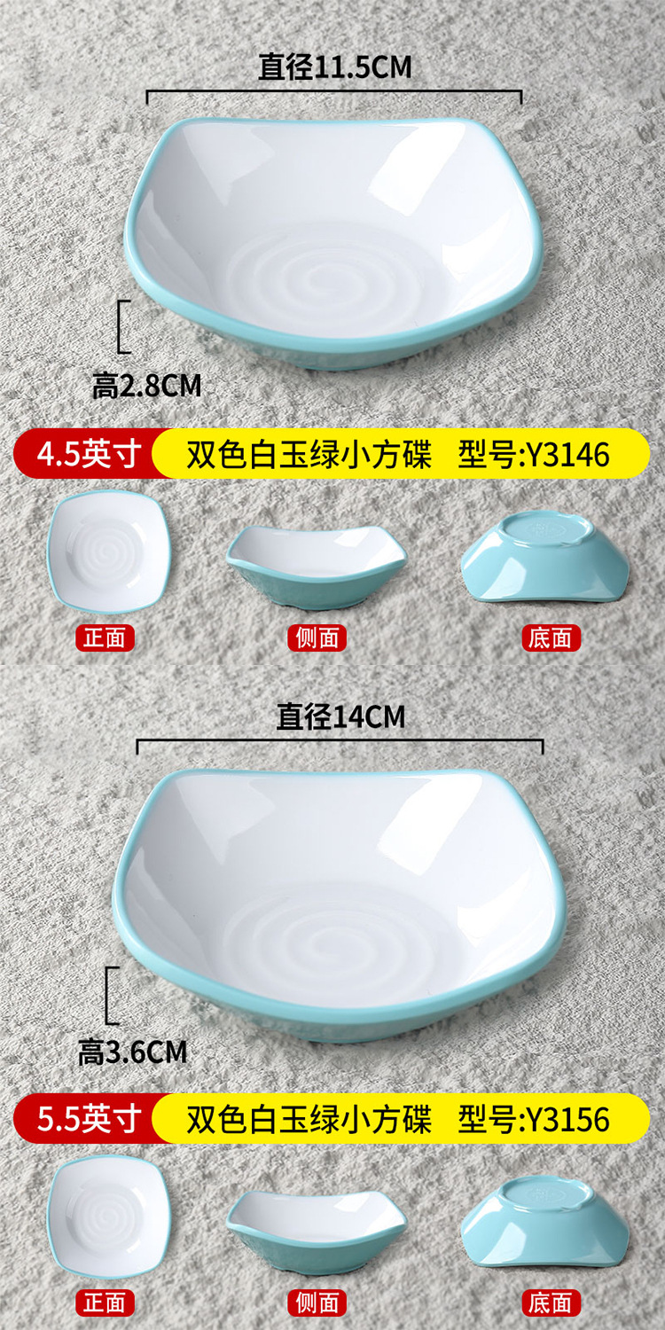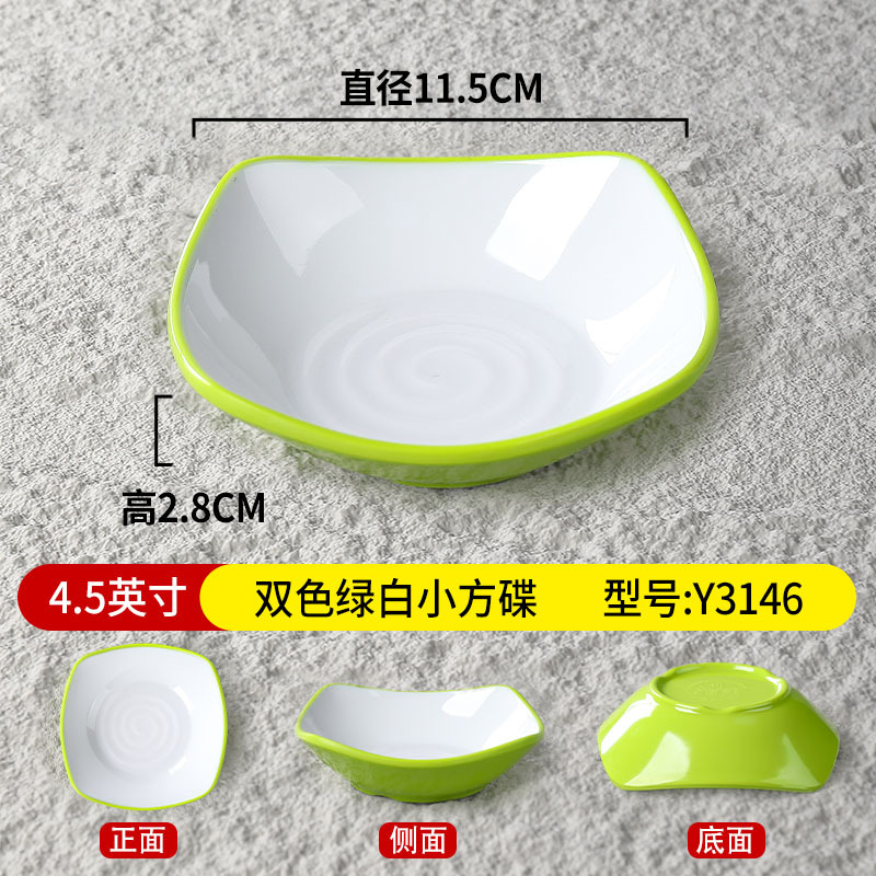• 4.5inch 2색 녹색 및 흰색 작은 사각형 접시 Y3146