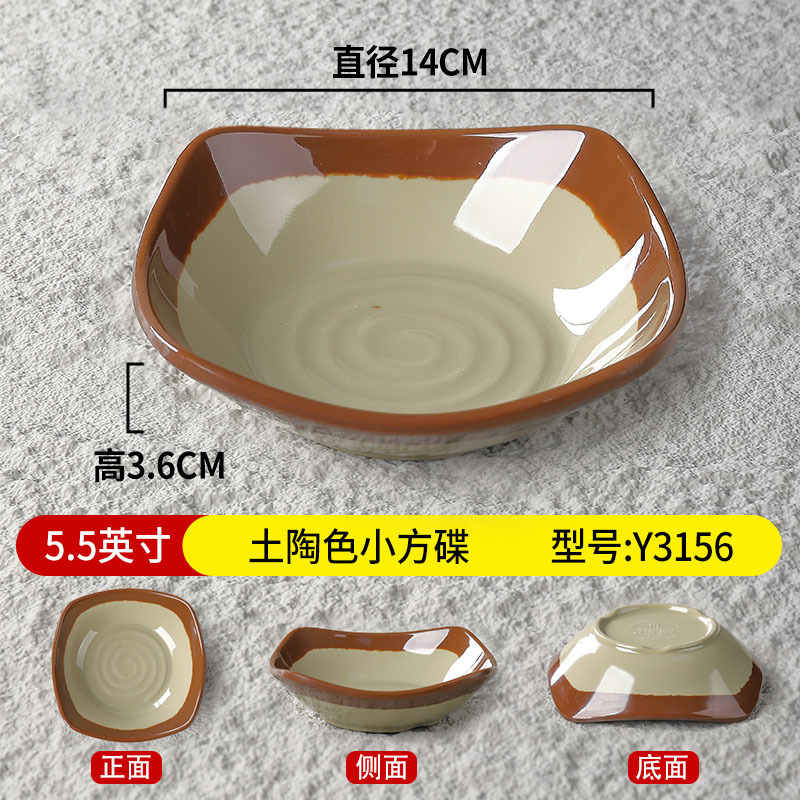 • 4.5inch 흙색 작은 사각형 접시 Y3146