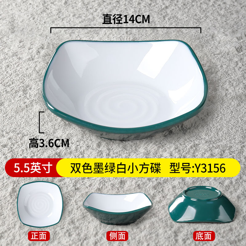 • 5.5inch 2색 짙은 녹색과 흰색의 작은 사각형 접시 Y3156