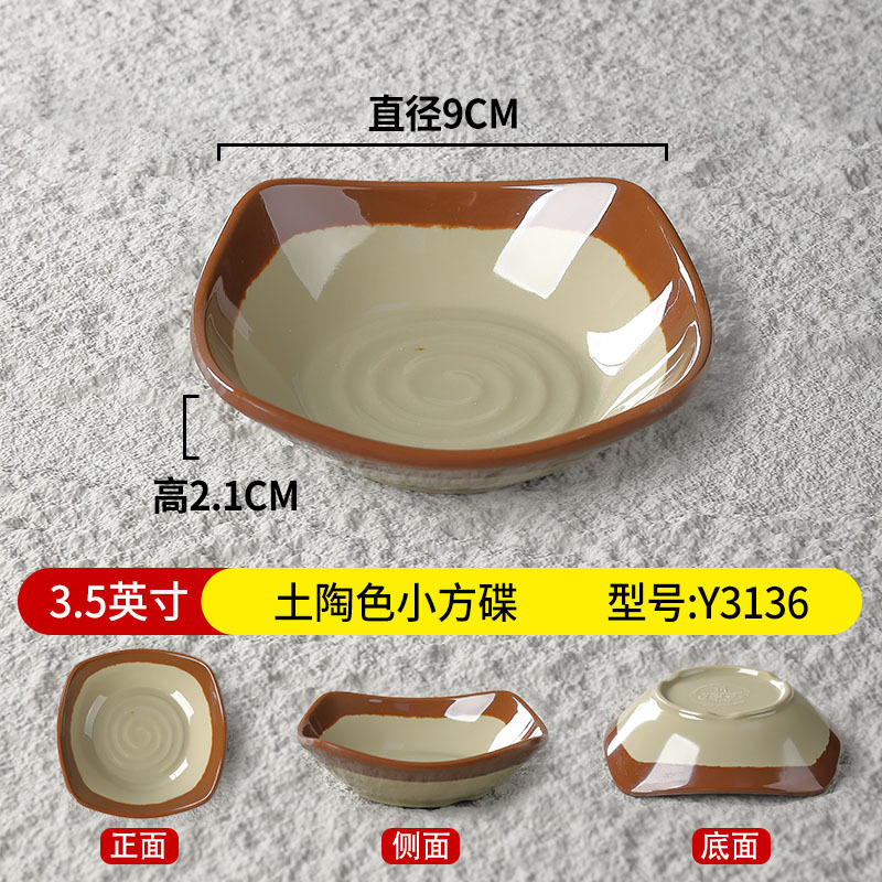 • 3.5inch 흙색 작은 사각형 접시 Y3136
