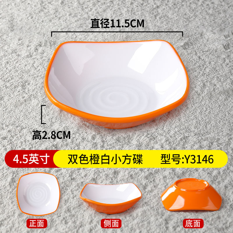• 4.5inch 주황색과 흰색의 두 가지 색상의 작은 사각형 접시 Y3146