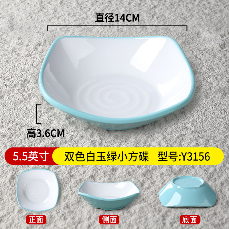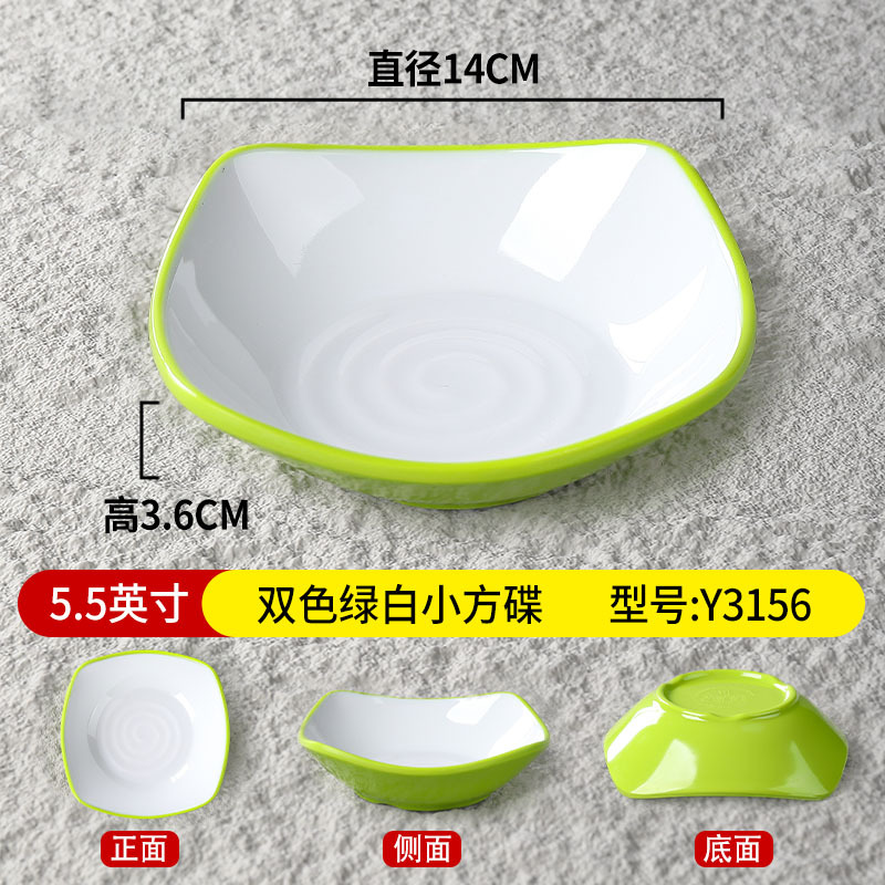 • 5.5inch 2색 녹색 및 흰색 작은 사각형 접시 Y3156