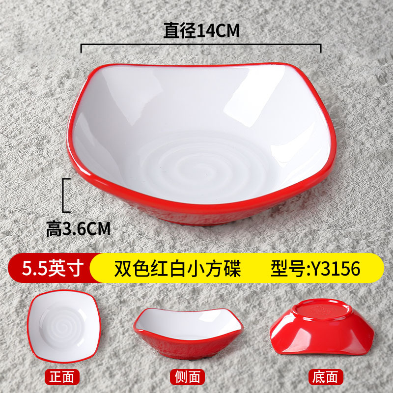 • 5.5inch 빨간색과 흰색의 두 가지 색상의 작은 사각형 접시 Y3156