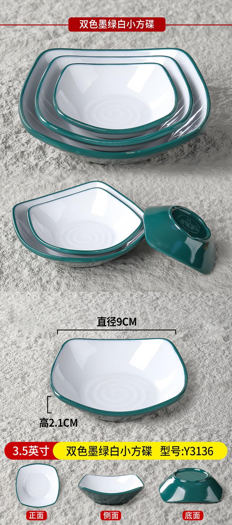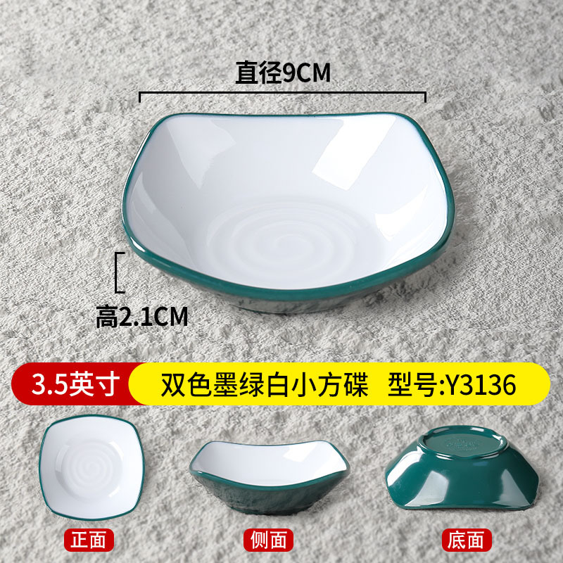 • 3.5inch 2색 짙은 녹색과 흰색의 작은 사각형 접시 Y3136