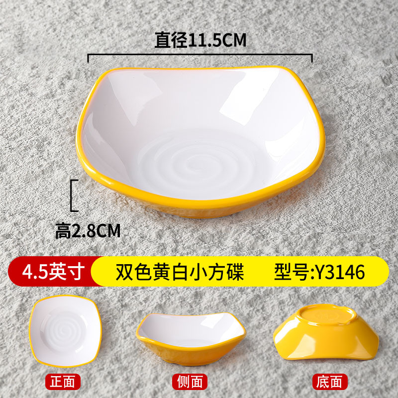 • 4.5inch 노란색과 흰색의 두 가지 색상의 작은 사각형 접시 Y3146