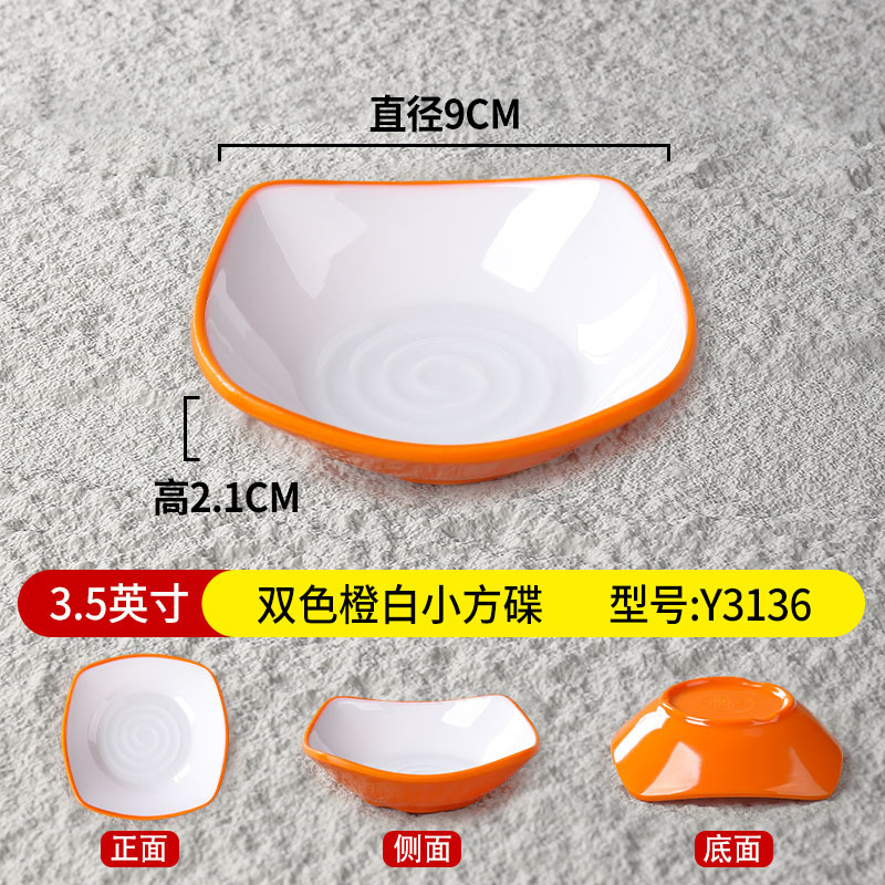 • 3.5inch 주황색과 흰색의 두 가지 색상의 작은 사각형 접시 Y3136