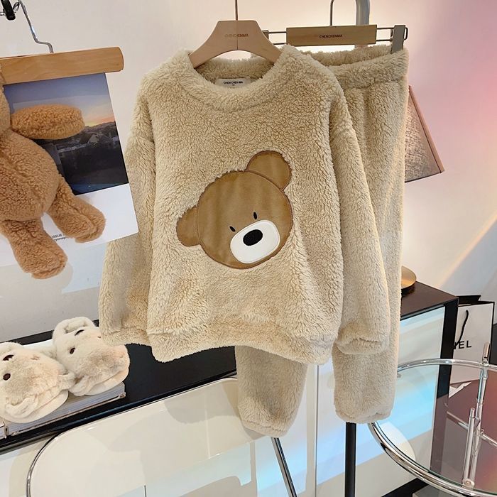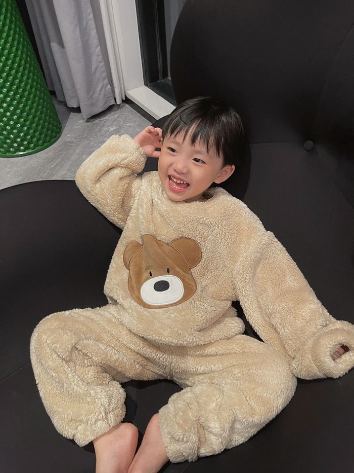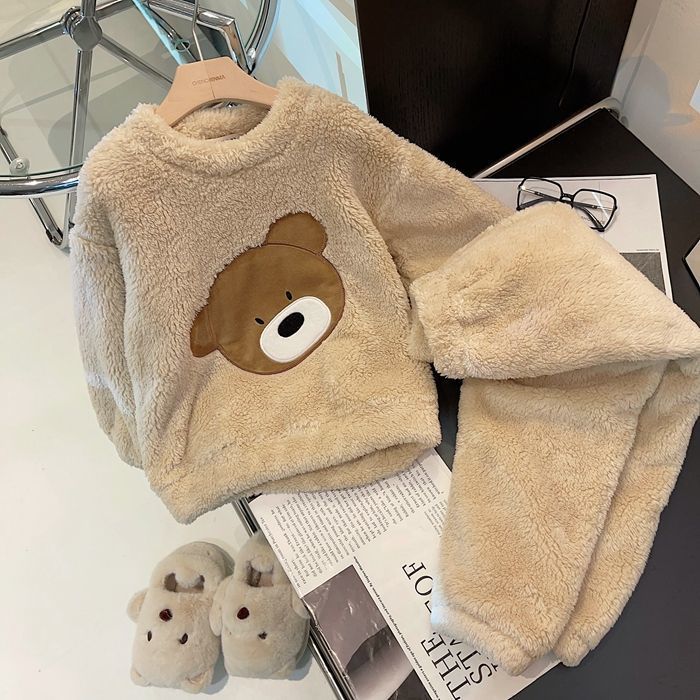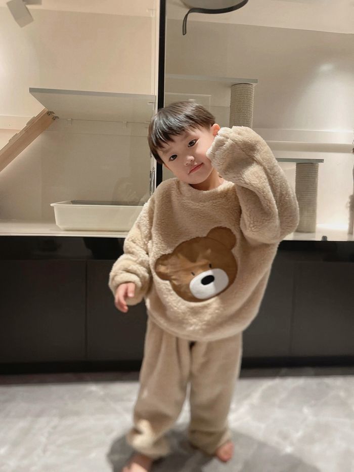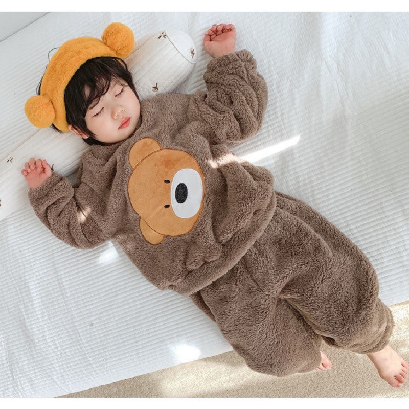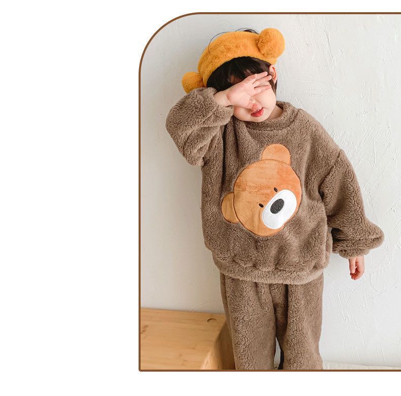 소년 소녀를위한 어린이 잠옷 겨울 곰 겨울 따뜻한 집 옷 어린이 플란넬 산호 양털 세트