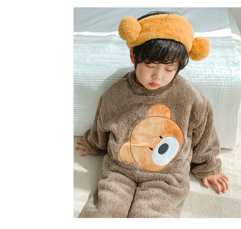 소년 소녀를위한 어린이 잠옷 겨울 곰 겨울 따뜻한 집 옷 어린이 플란넬 산호 양털 세트스토어 가기