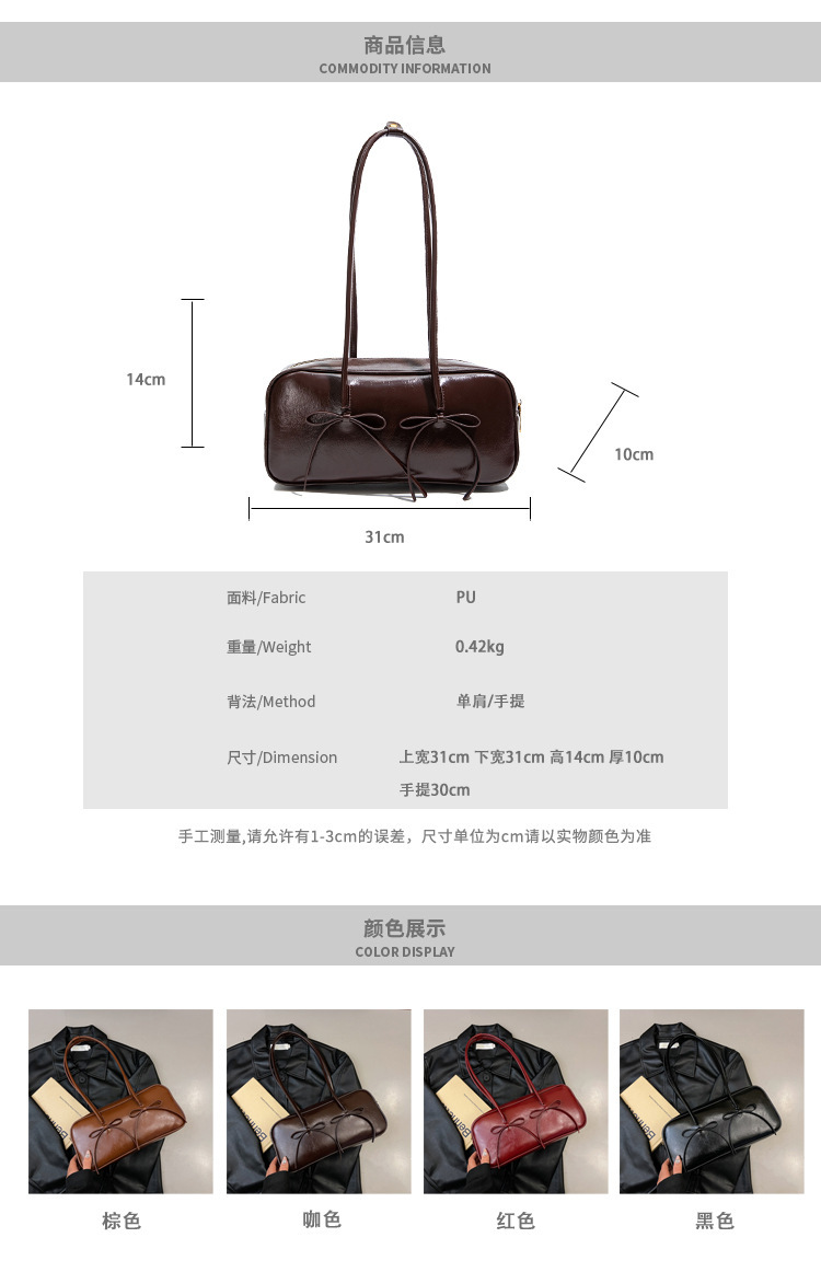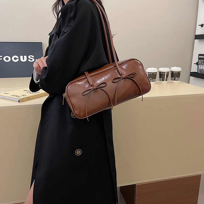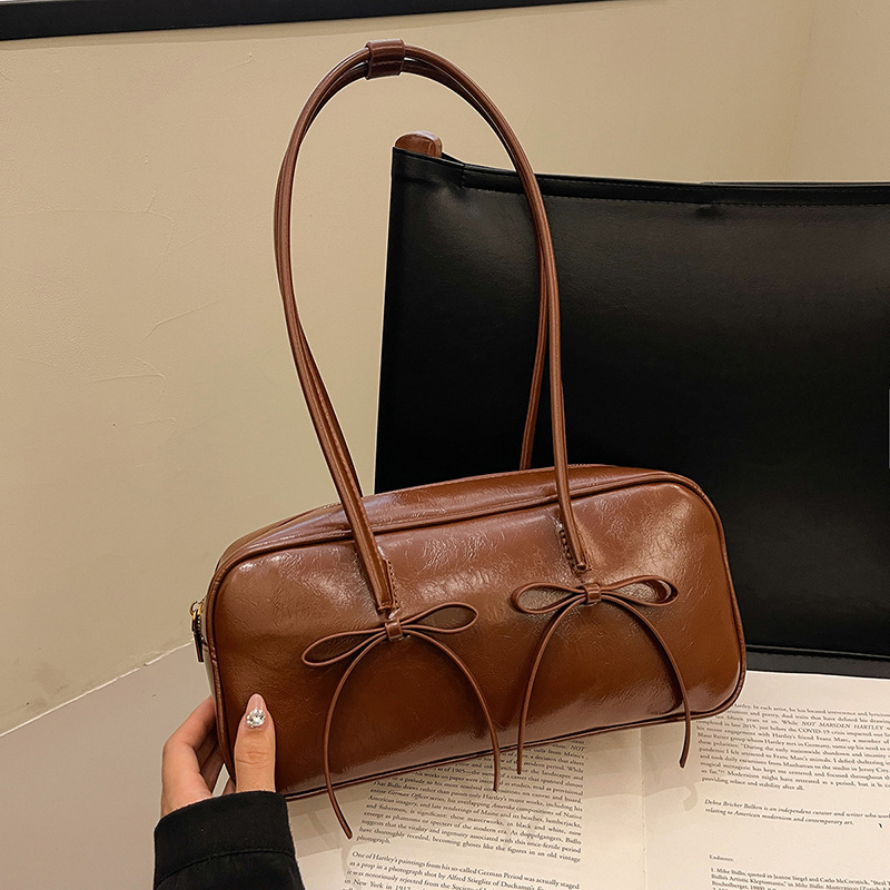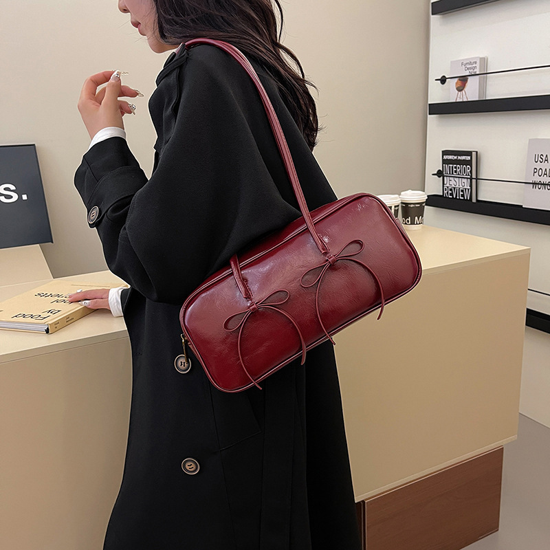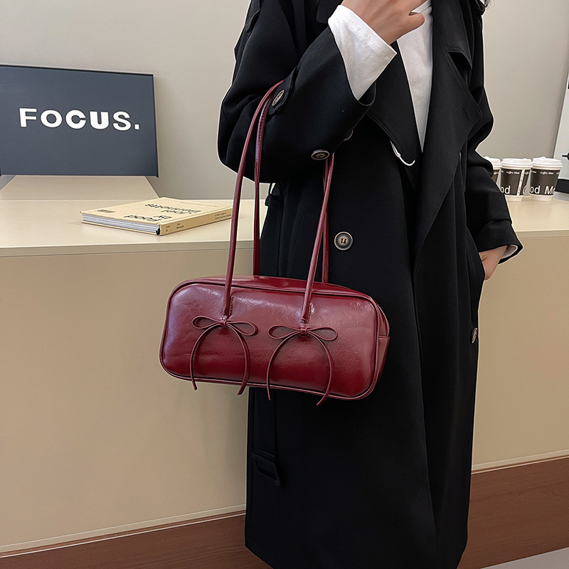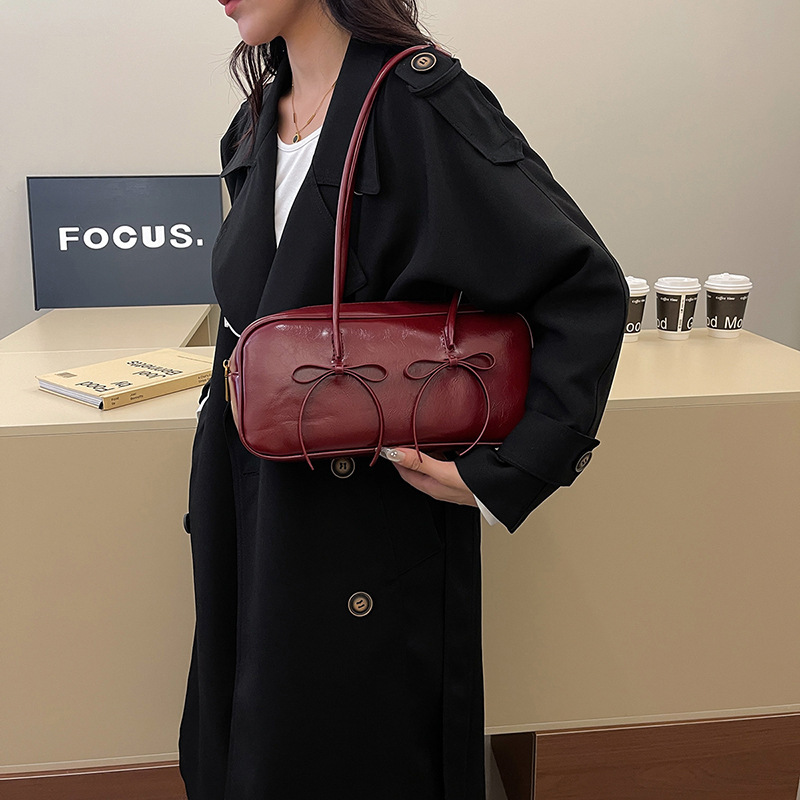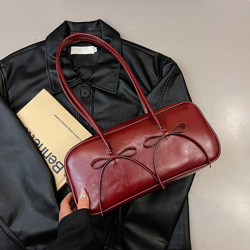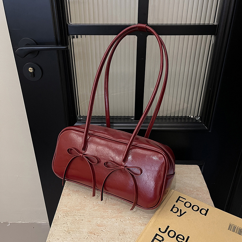 여성을위한 패션 레드 보스턴 가방 2024 가을, 겨울 새로운 베개 가방 질감 겨드랑이 가방 대용량 여성 가방 유행스토어 가기