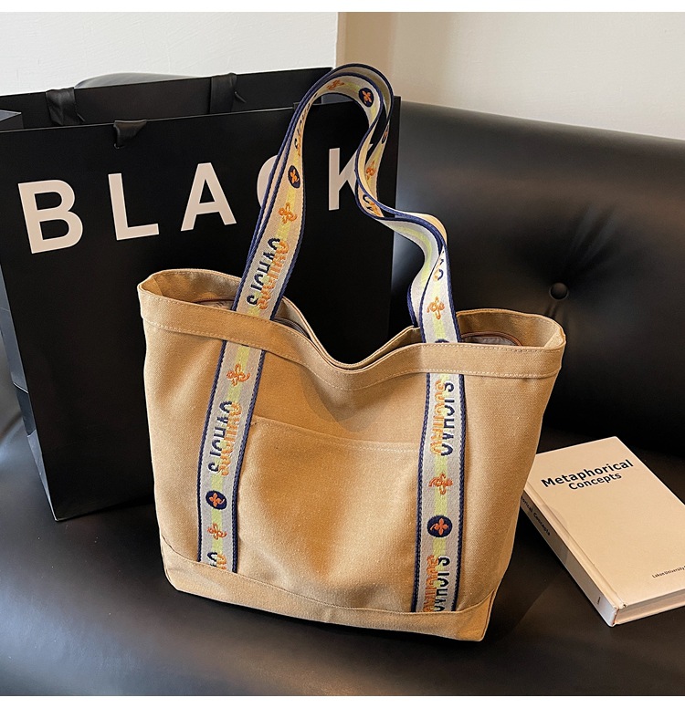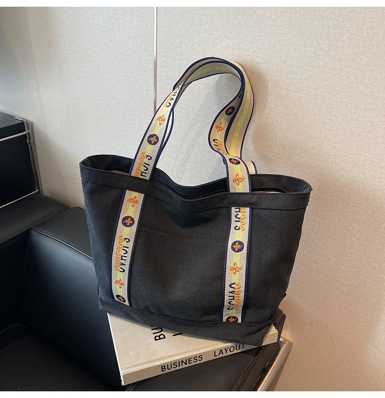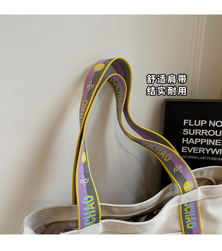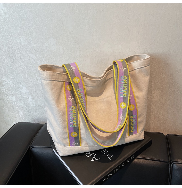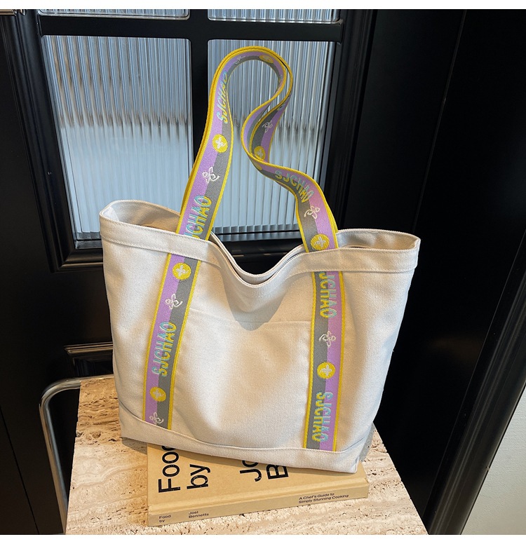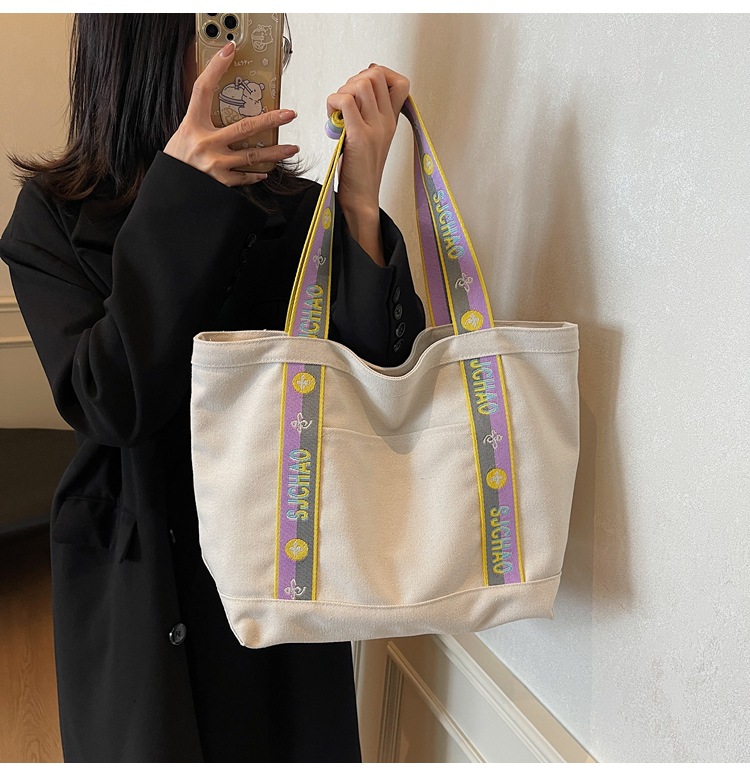 대용량 캔버스 통근 가방 여성의 2024 새로운 대학생 수업 토트 가방 어깨 손 쇼핑백스토어 가기