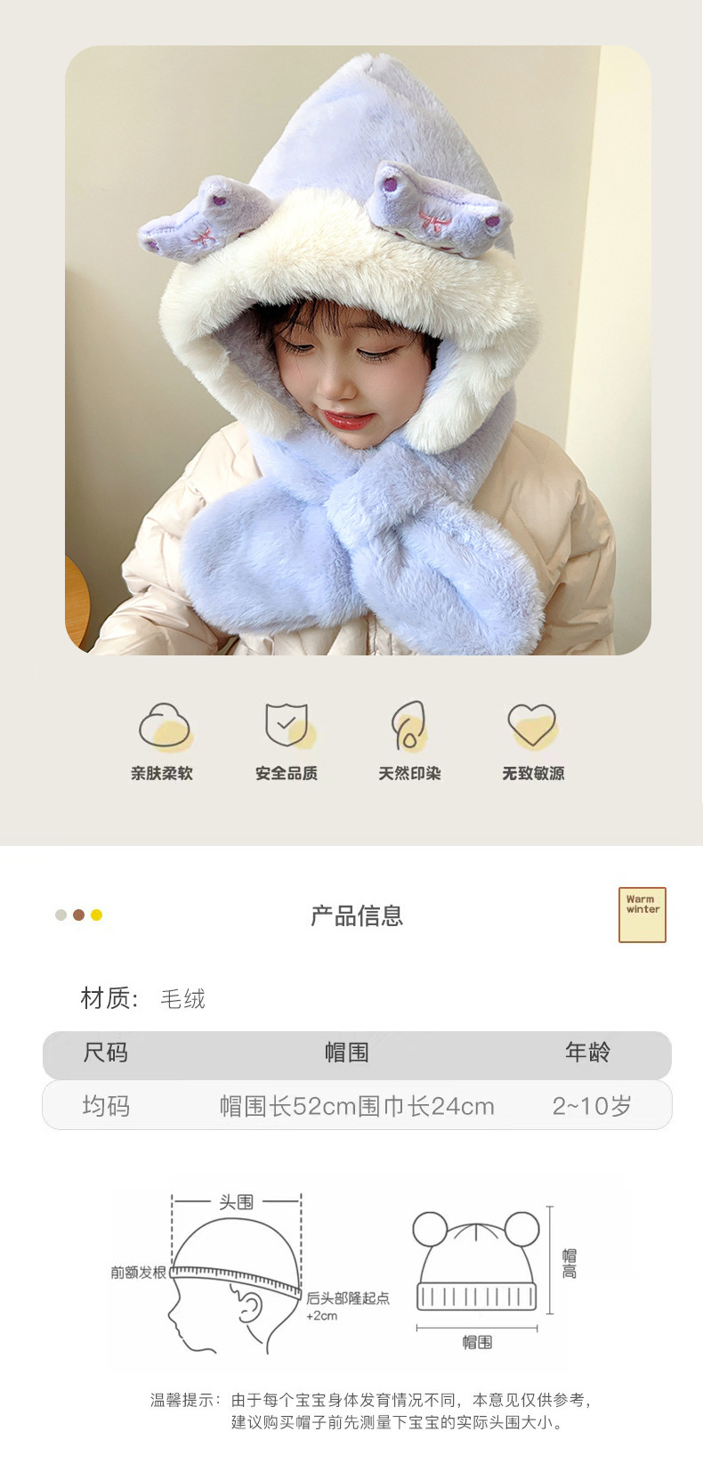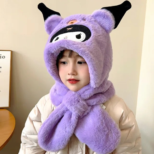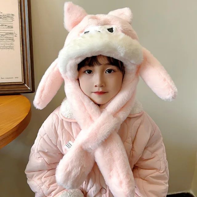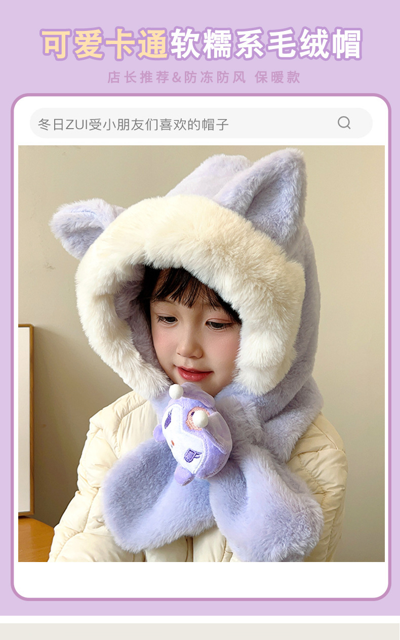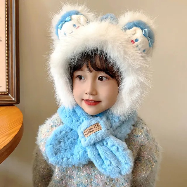 겨울 어린이 모자와 스카프 원피스 귀여운 만화 푹신한 모자 여성 패션 올 매치 귀와 목 따뜻한스토어 가기
