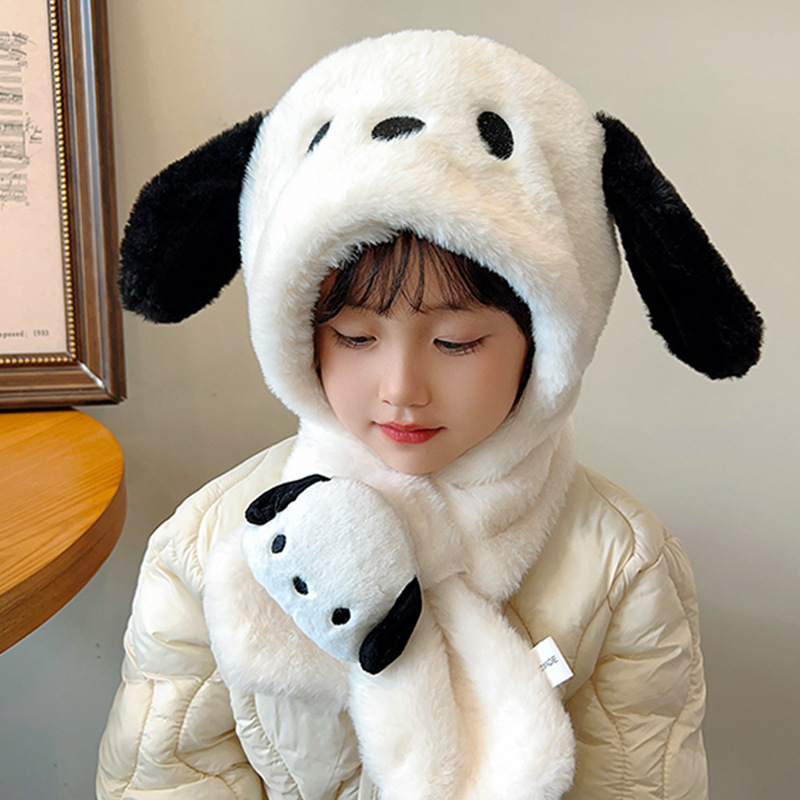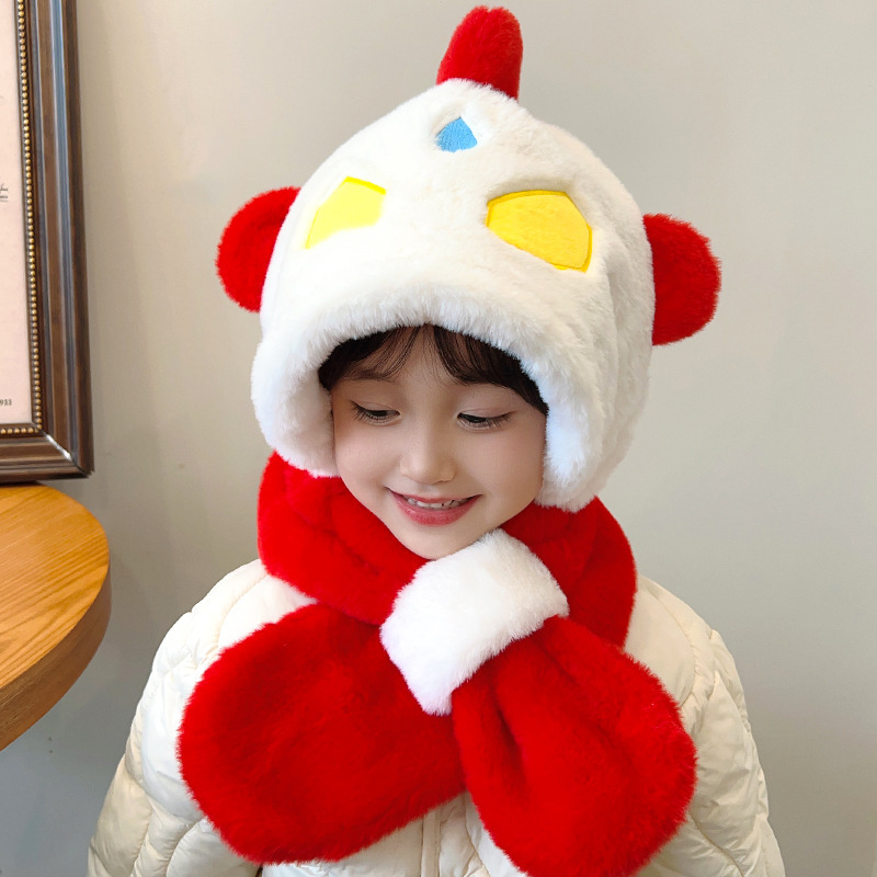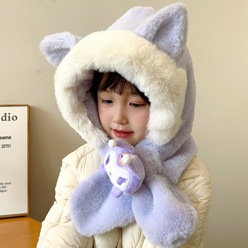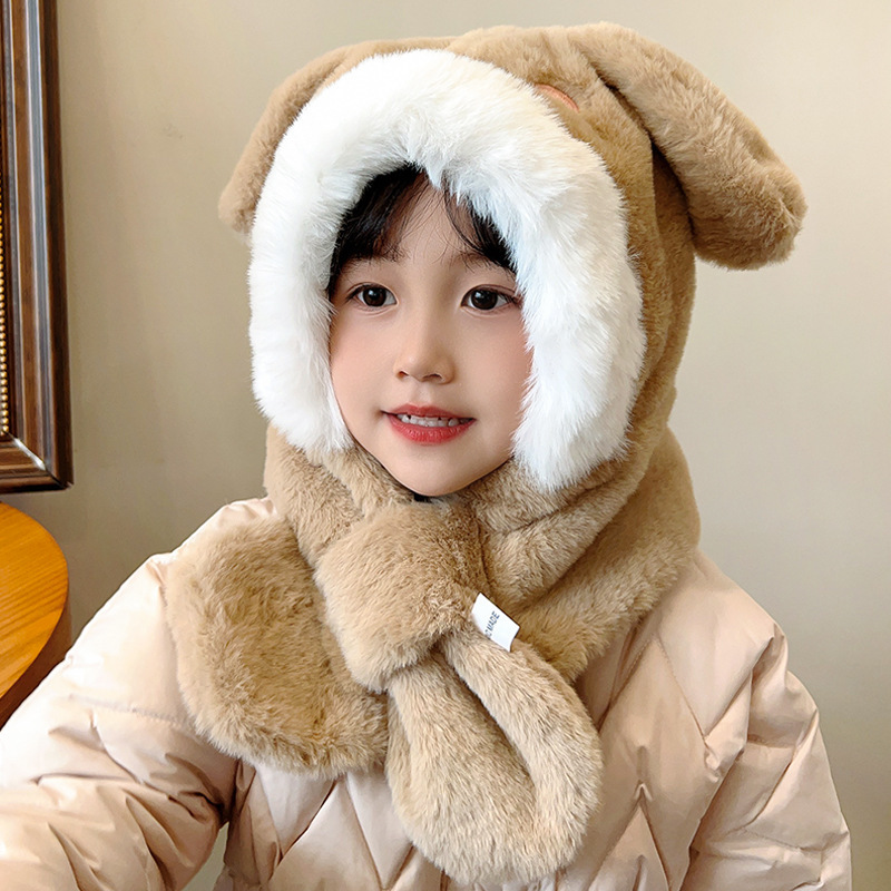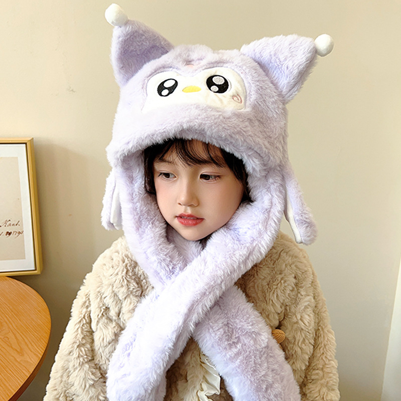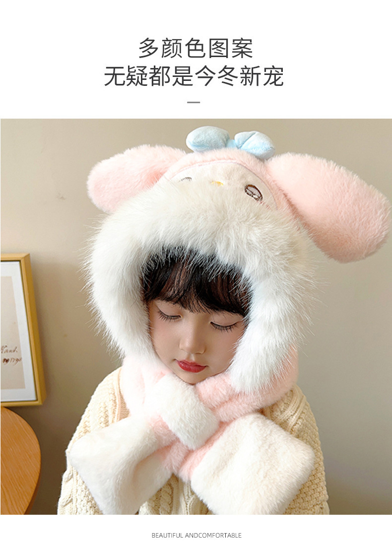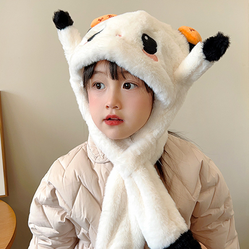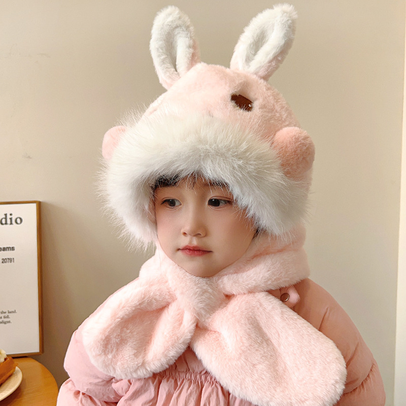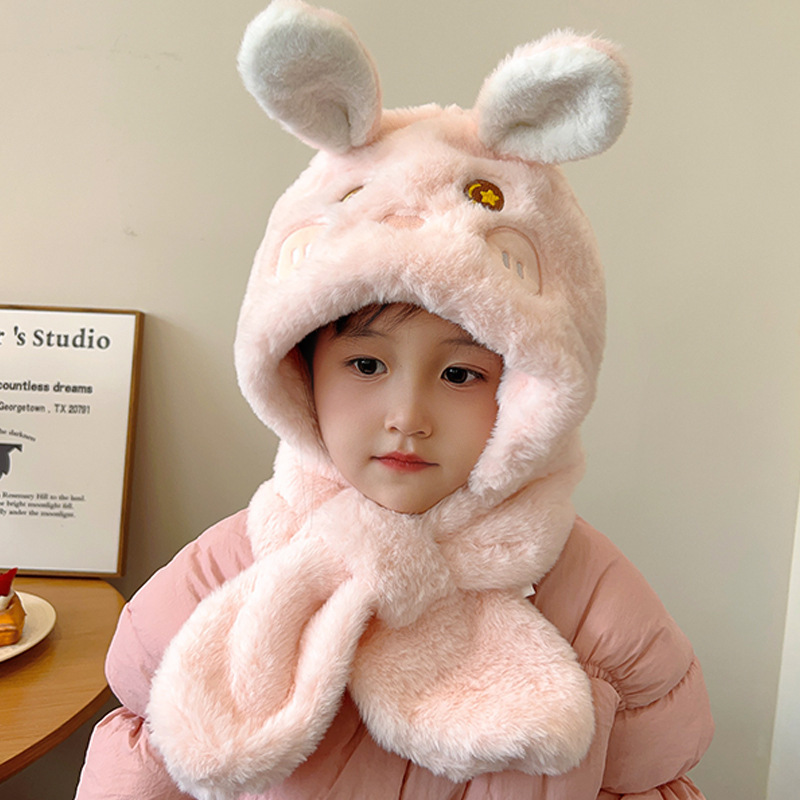 겨울 어린이 모자와 스카프 원피스 귀여운 만화 푹신한 모자 여성 패션 올 매치 귀와 목 따뜻한