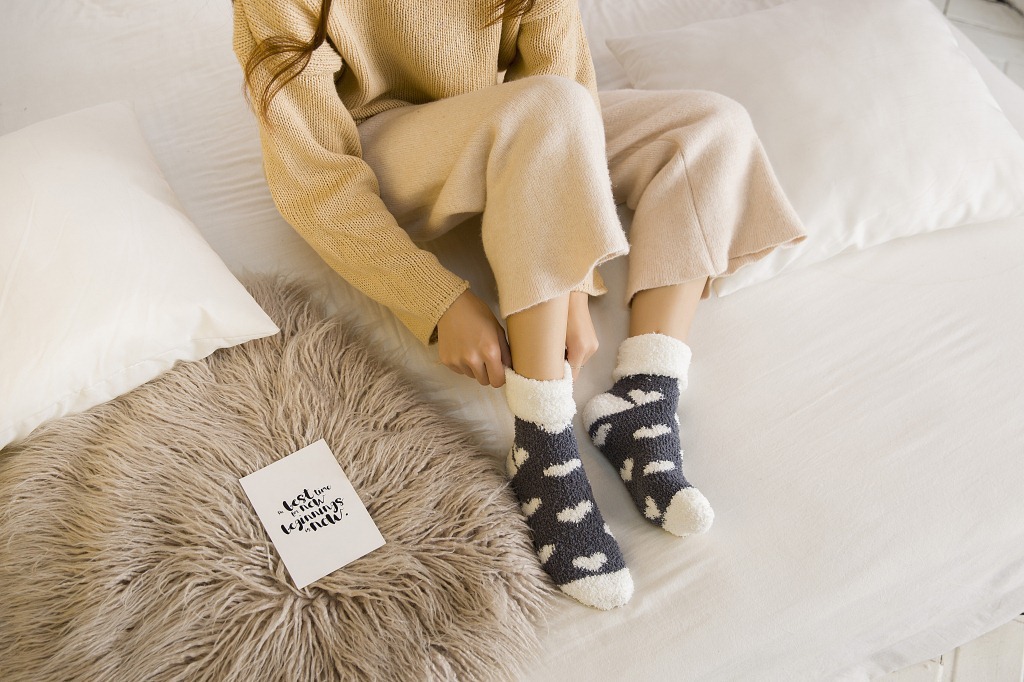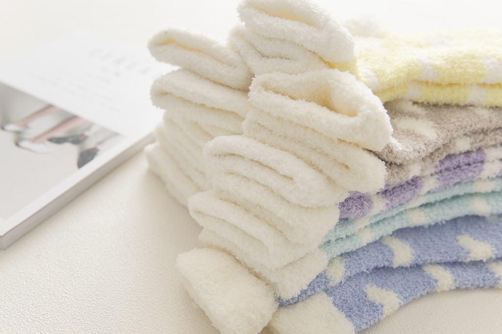 국경 간 가을과 겨울 새로운 플랜지 캔디 컬러 사랑 작은 신선한 산호 양털 수건 홈 바닥 여성 양말 두껍게