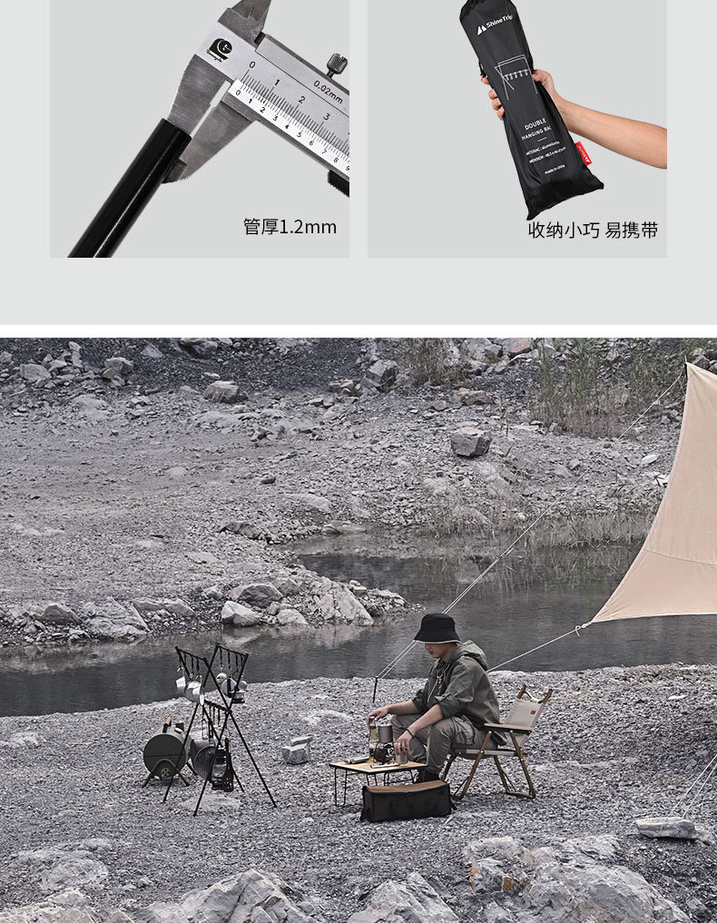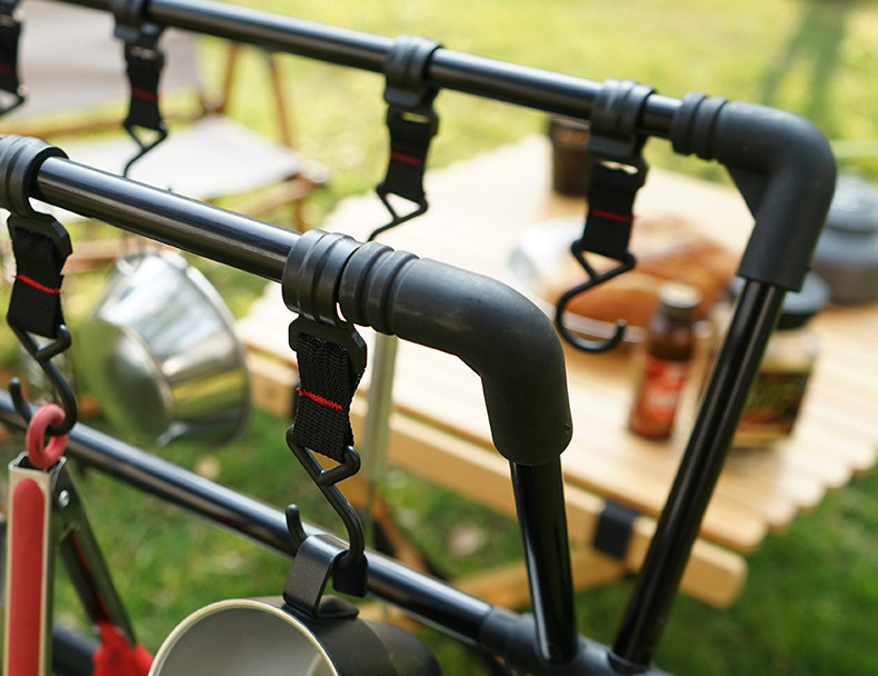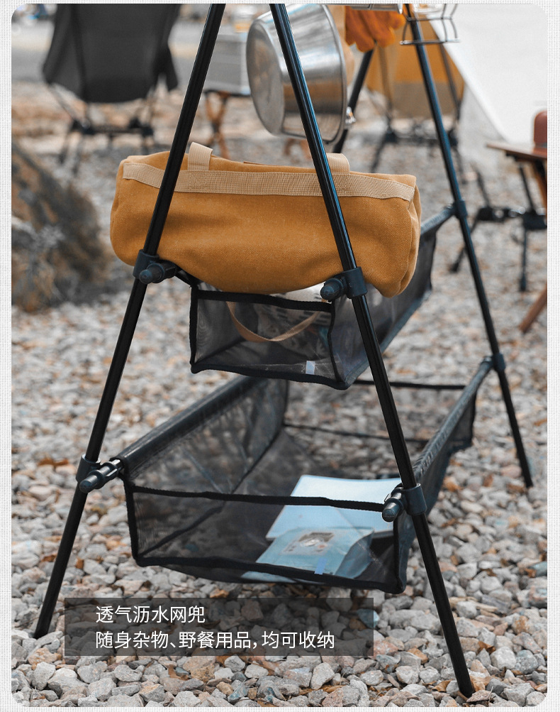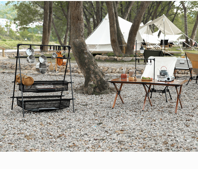 도매 더블 레이어 캠핑 스토리지 랙 야외 랙 캠핑 피크닉 접이식 스탠드 식기 냄비 랙 램프 폴 랙