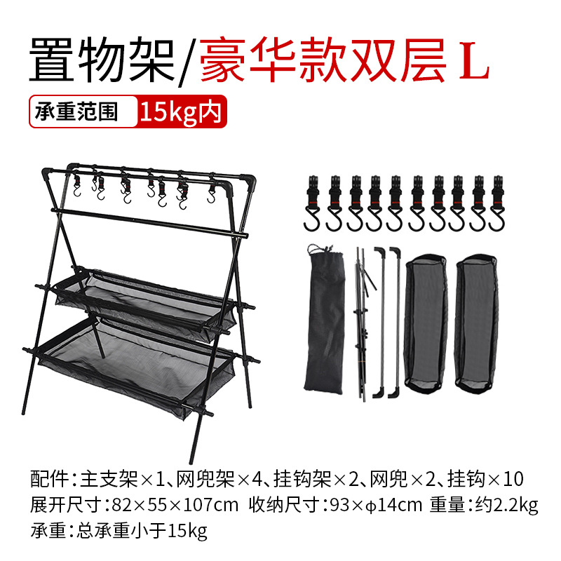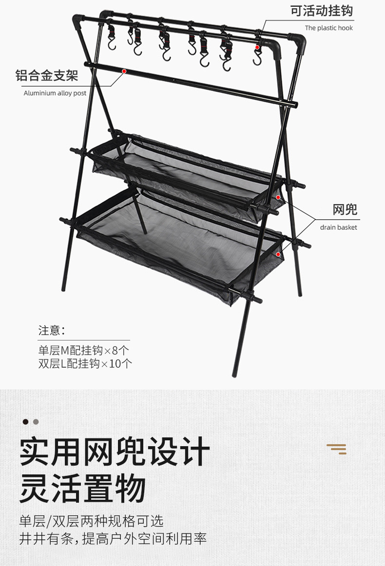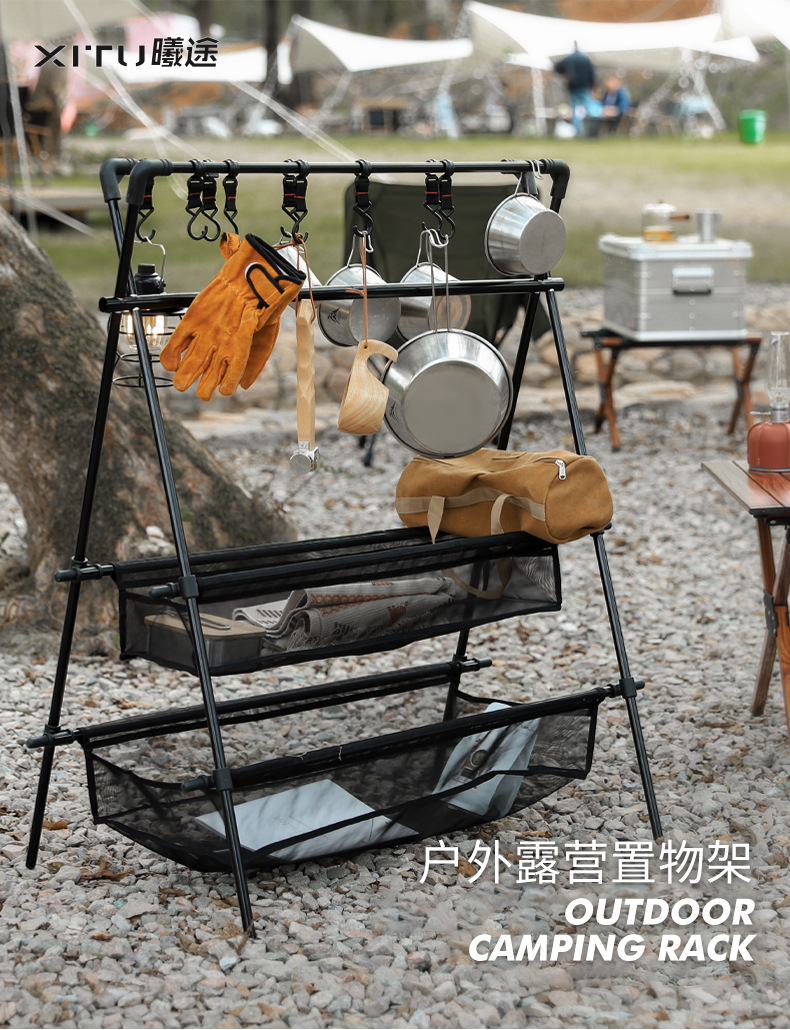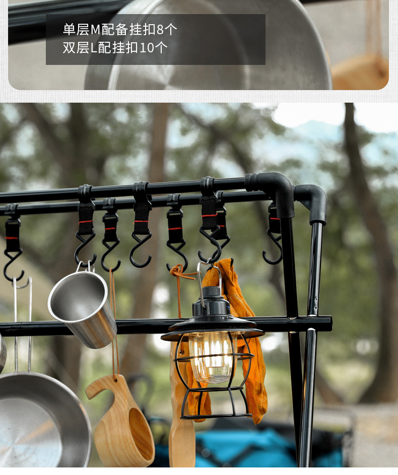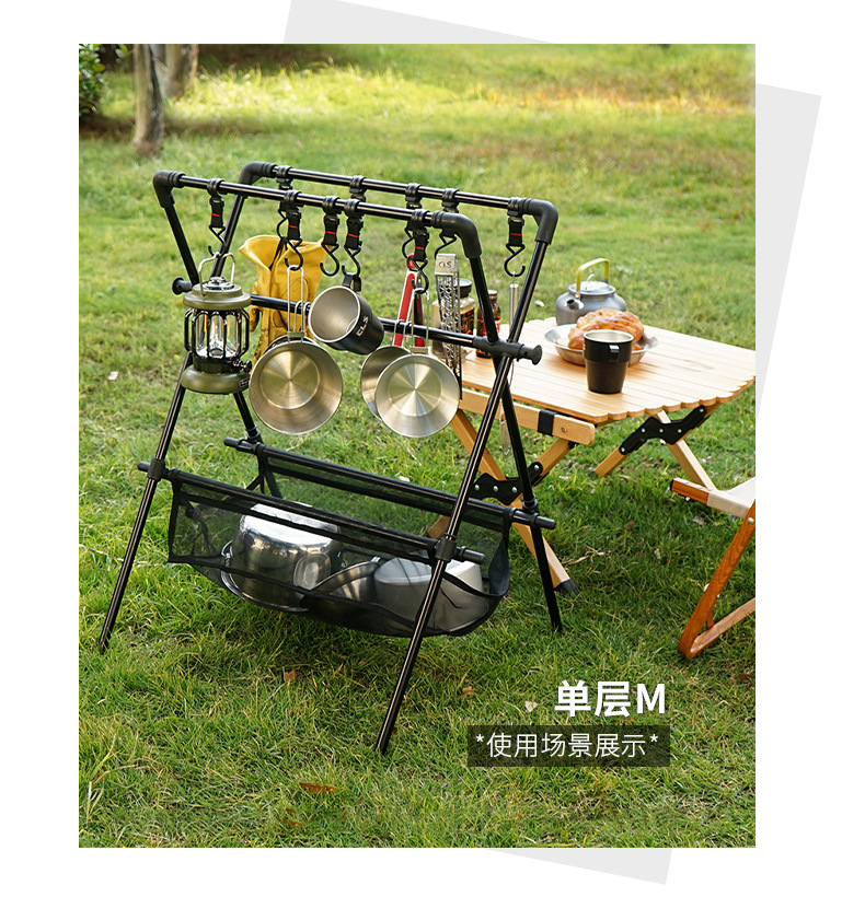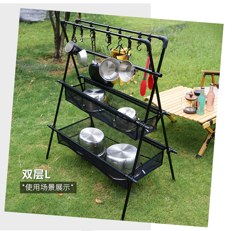 도매 더블 레이어 캠핑 스토리지 랙 야외 랙 캠핑 피크닉 접이식 스탠드 식기 냄비 랙 램프 폴 랙스토어 가기