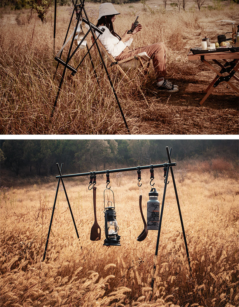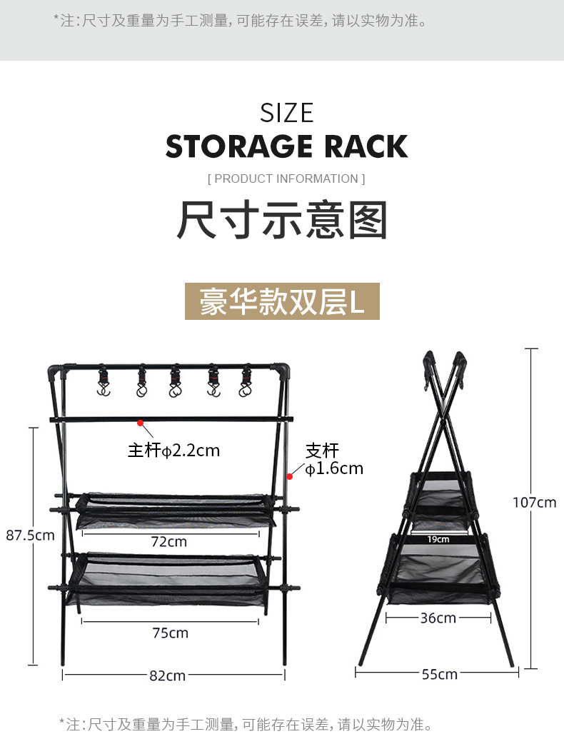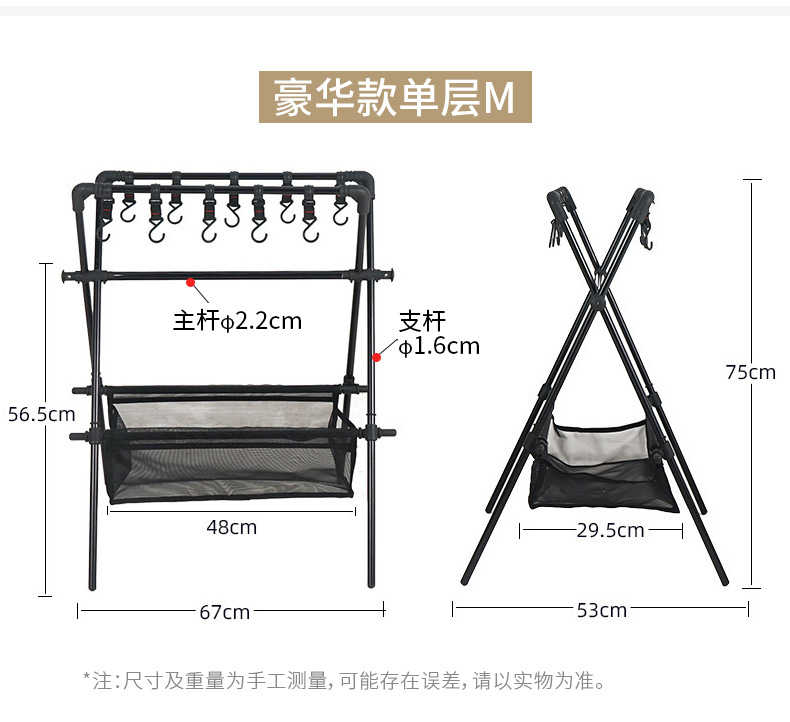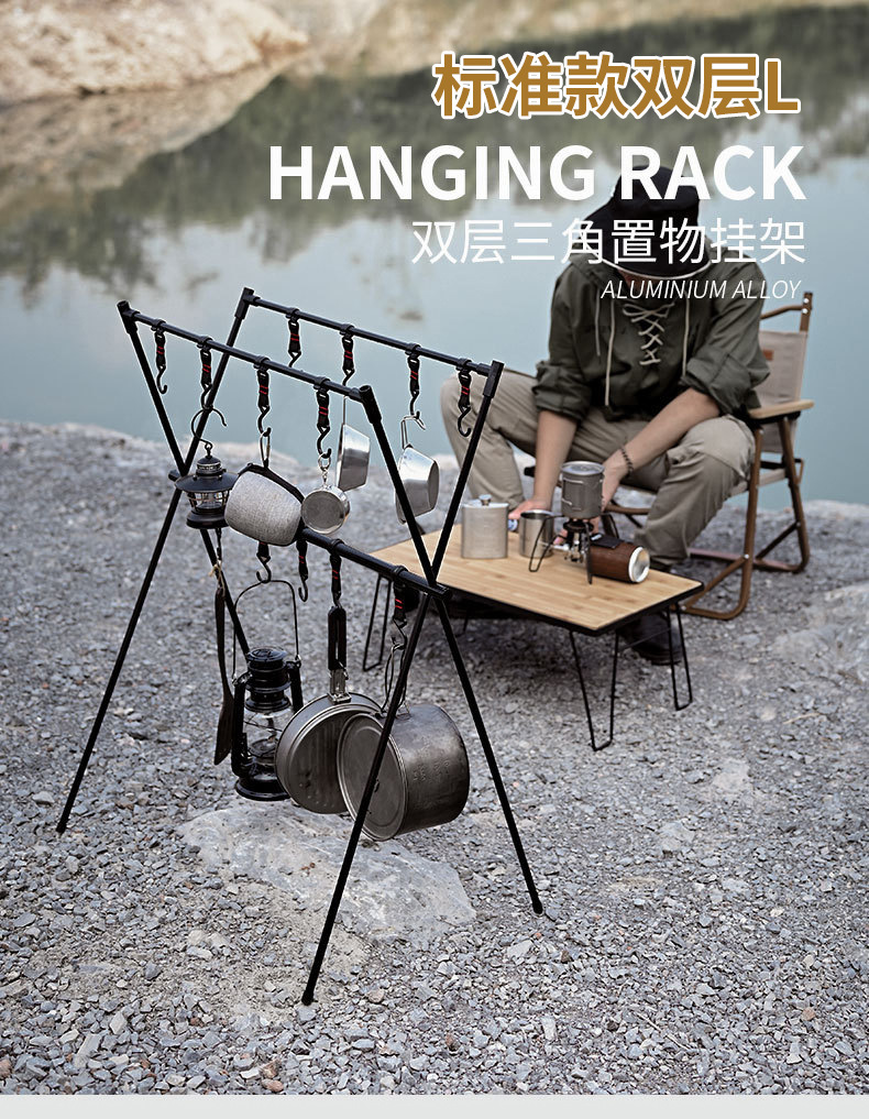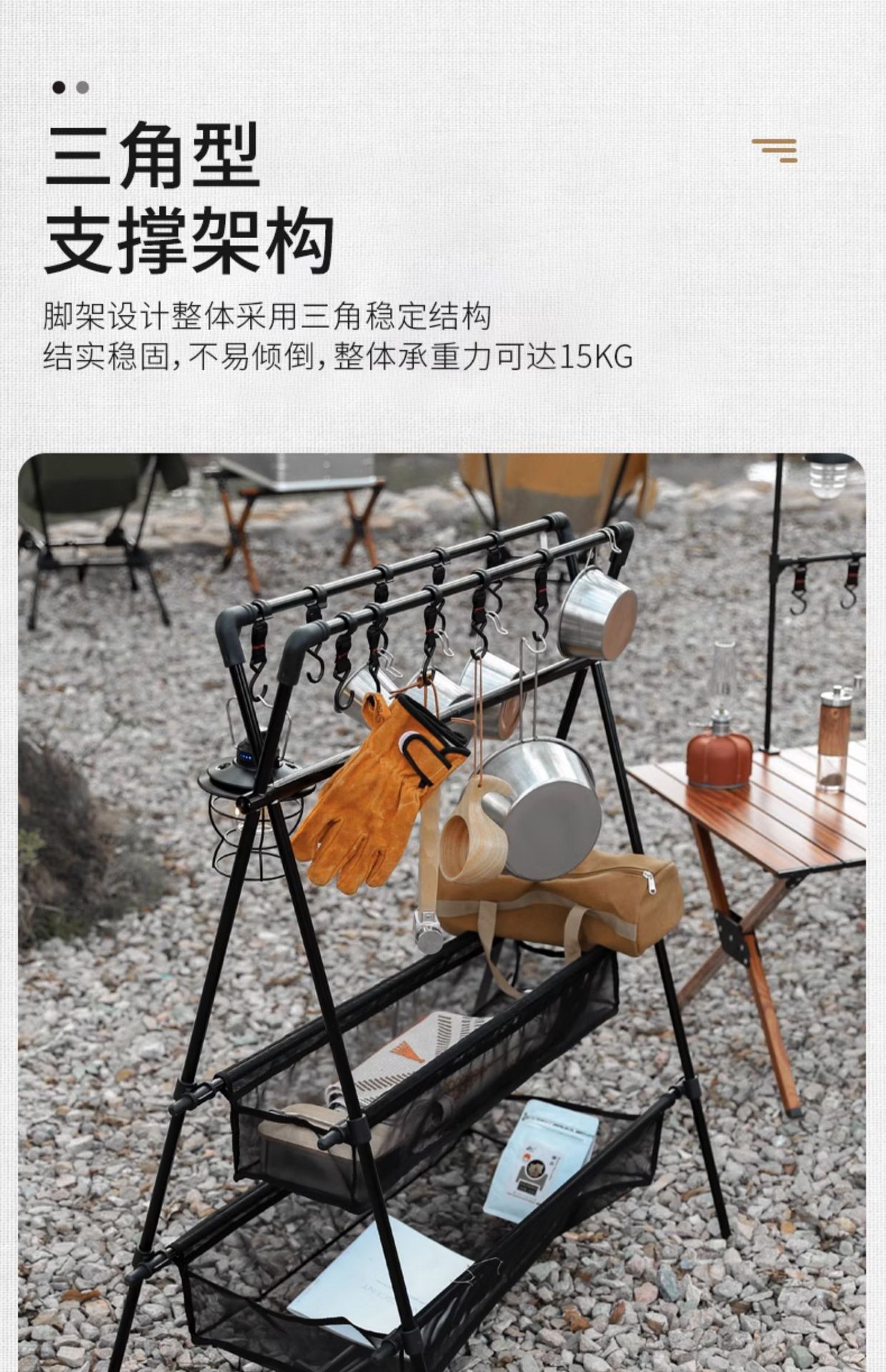 도매 더블 레이어 캠핑 스토리지 랙 야외 랙 캠핑 피크닉 접이식 스탠드 식기 냄비 랙 램프 폴 랙스토어 가기